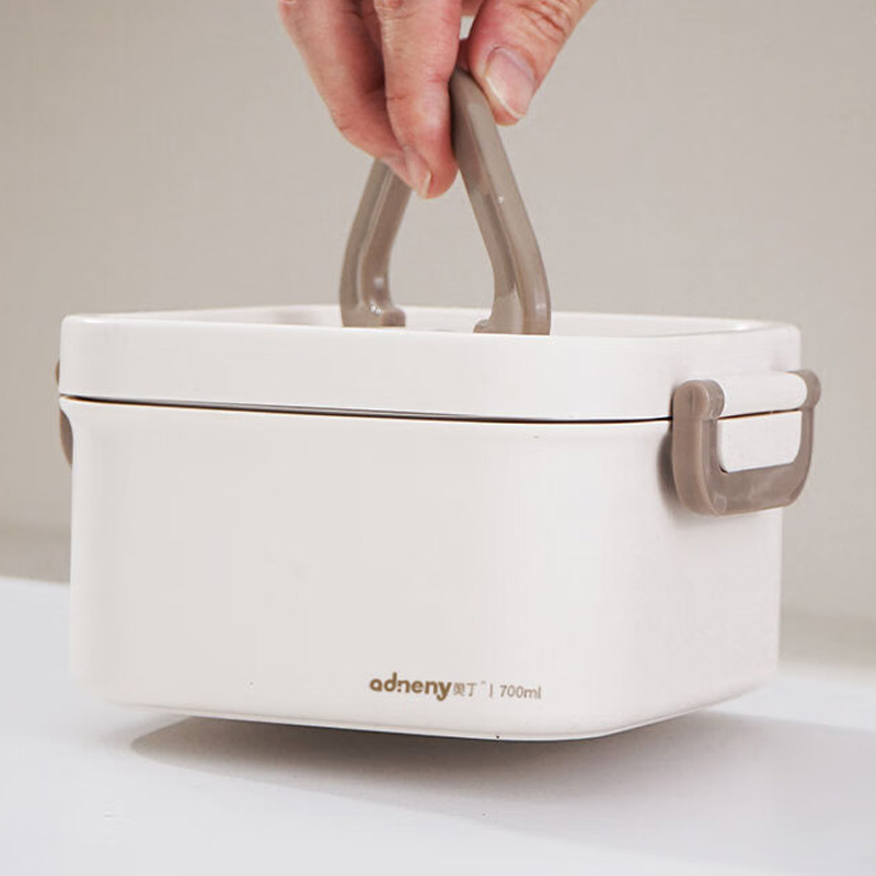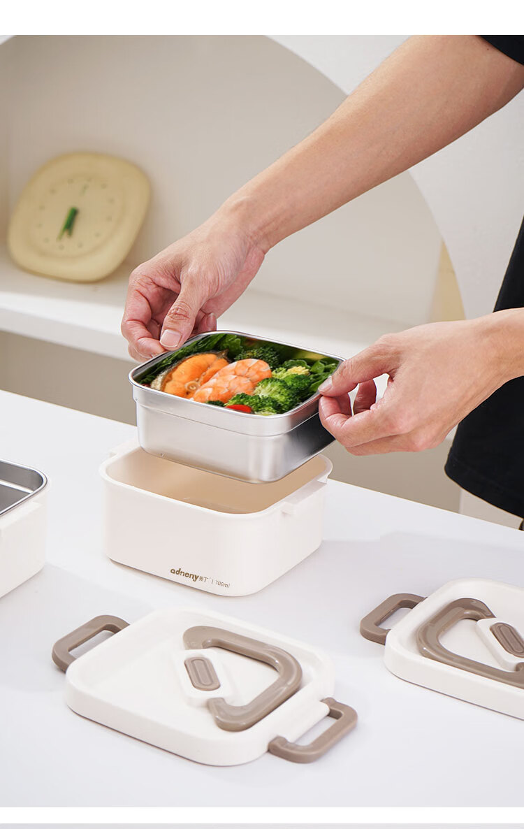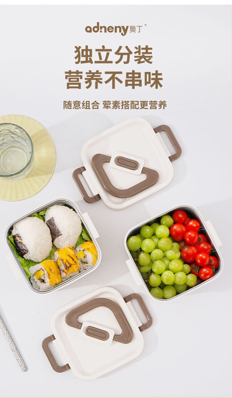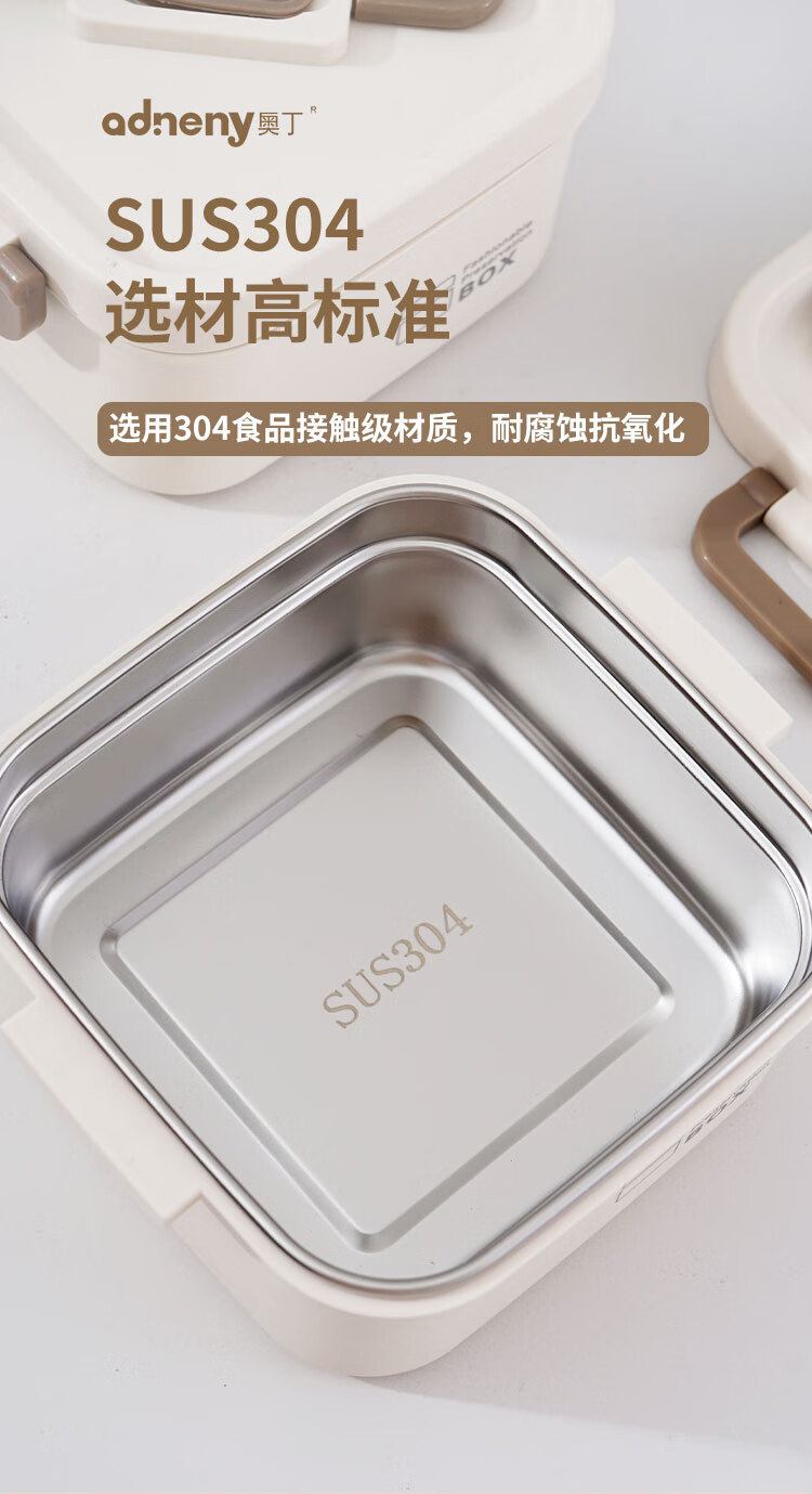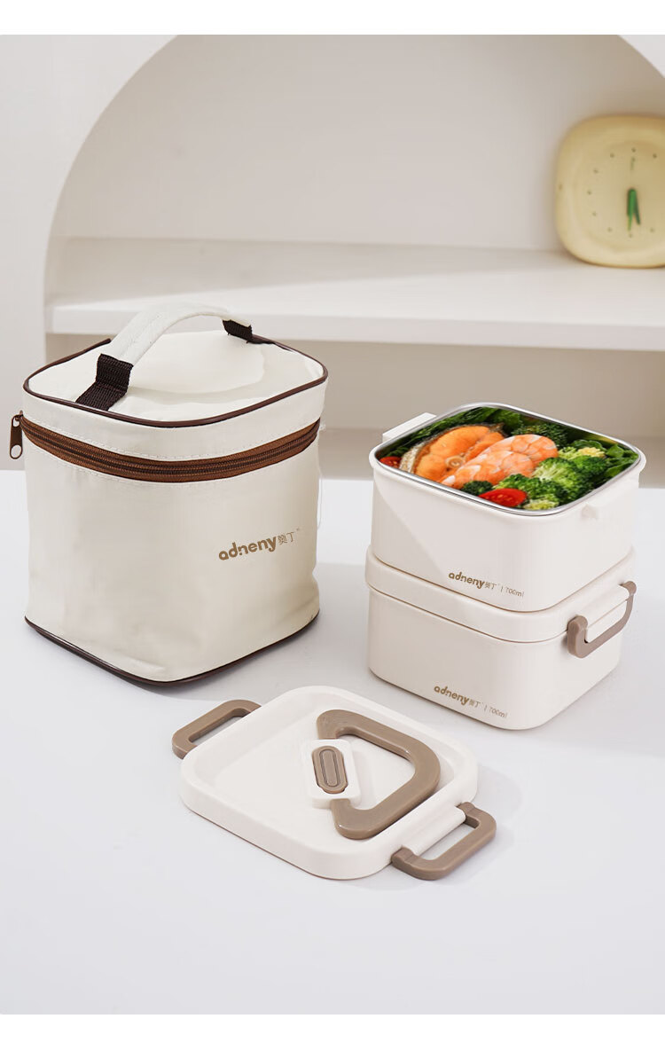 奥丁厨具ADNENY 304不锈钢方形餐盒 饭盒便当盒保温盒赠送手提袋 700ml*2 AS-208 本色