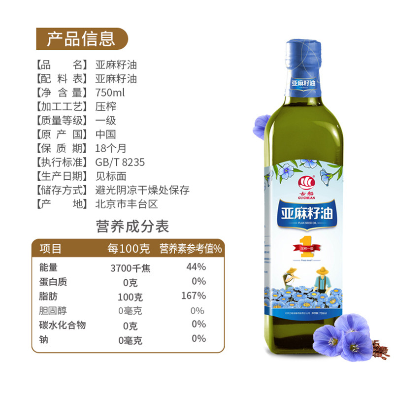 古船物理压榨食用油一级亚麻籽油 750ml*2组合礼盒装