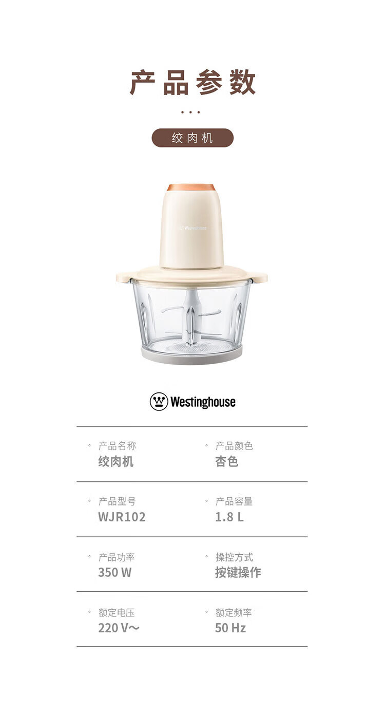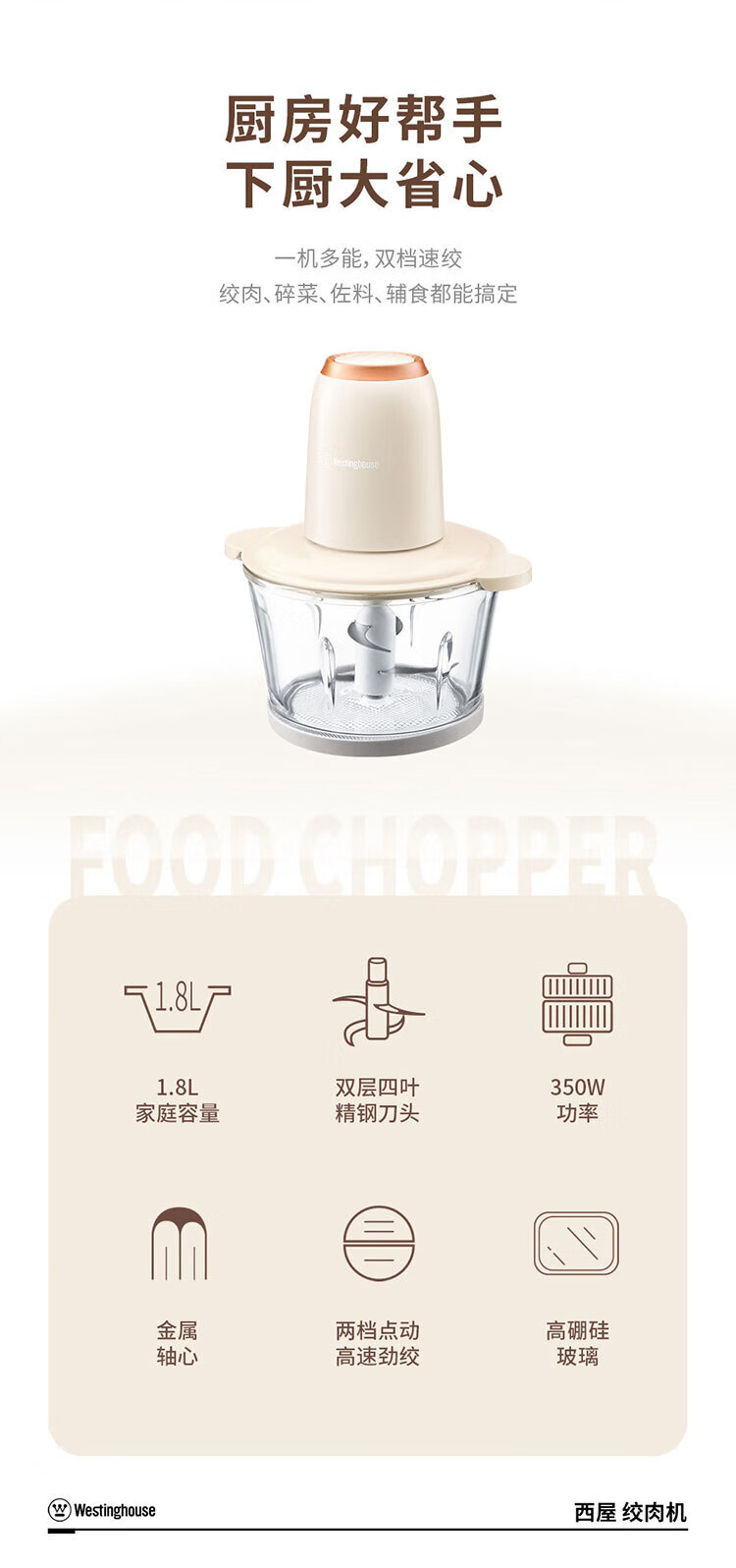 西屋多功能绞肉机大容量碎菜 绞肉 辅食机 WJR102 送父母送朋友 企业福利