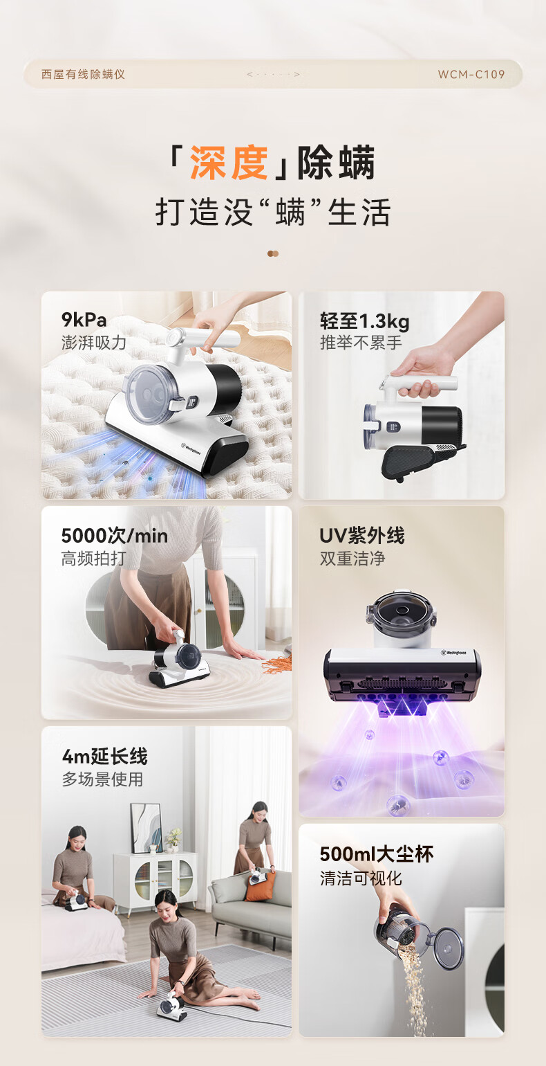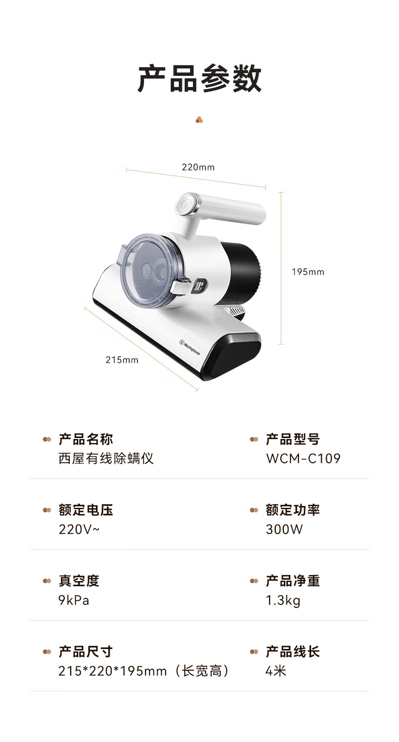 西屋有线除螨仪 UV紫外线双重洁净 过热保护一键开关WCM-C109
