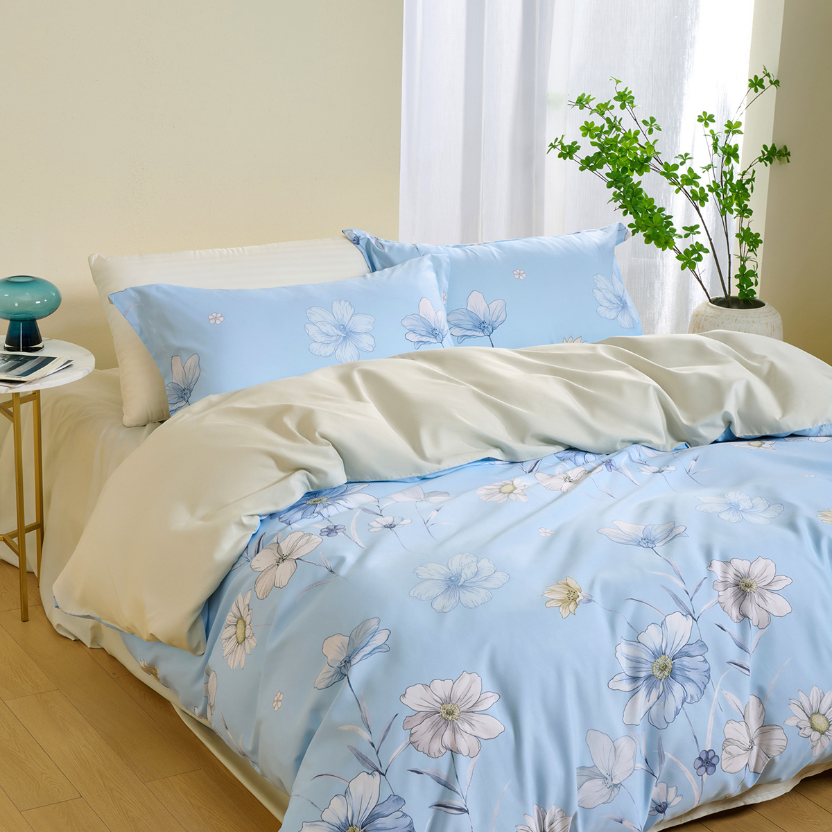 水星家纺怡梦花间磨毛四件套 普区包邮线下专柜同款时尚AB面柔软亲肤