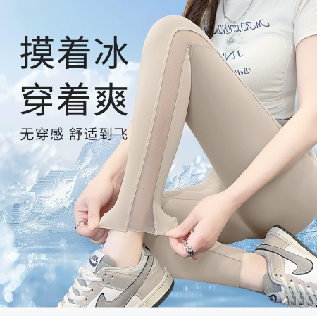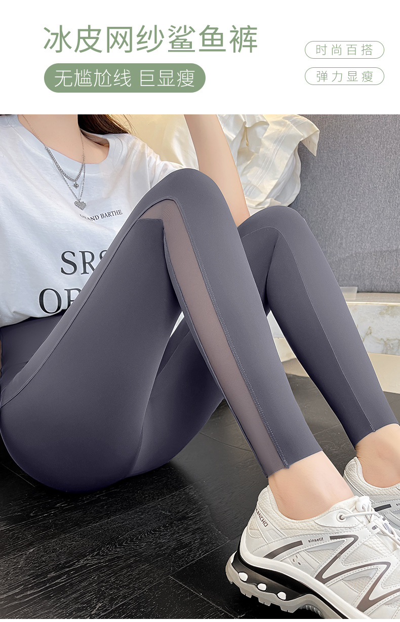 2025年春夏季外穿冰皮网纱九分薄款鲨鱼裤收腹提臀瑜伽防晒打底裤