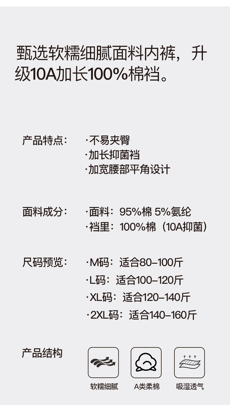10A抑菌新疆长绒棉高腰纯棉内裤大码无痕全棉加长裆运动平角内裤