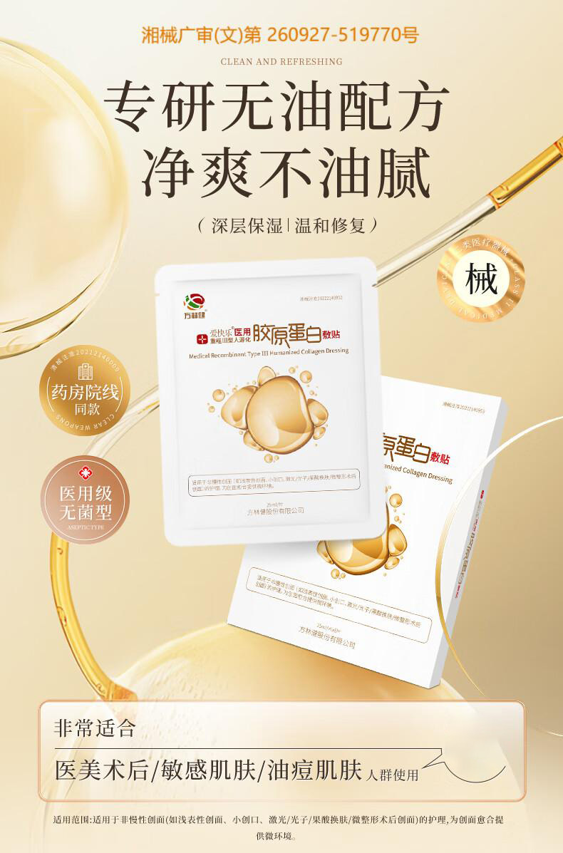 方林健爱快乐医用重组型人源化胶原蛋白敷贴 深沉保湿温和修复械字号25m1*6片/盒
