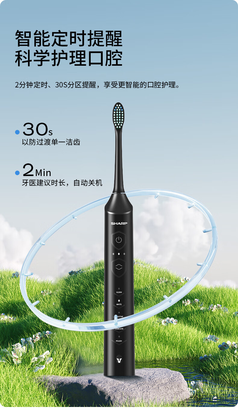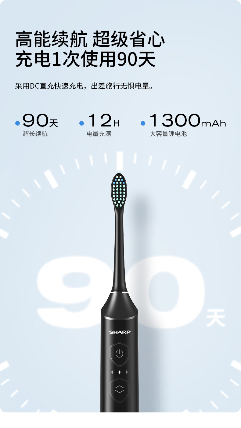 夏普声波电动牙刷 成人款 5种清洁模式 IPX7级防水 智能定时 男女士礼物 DO-NS68C-BK 节日礼物