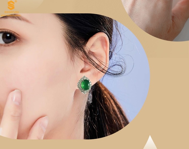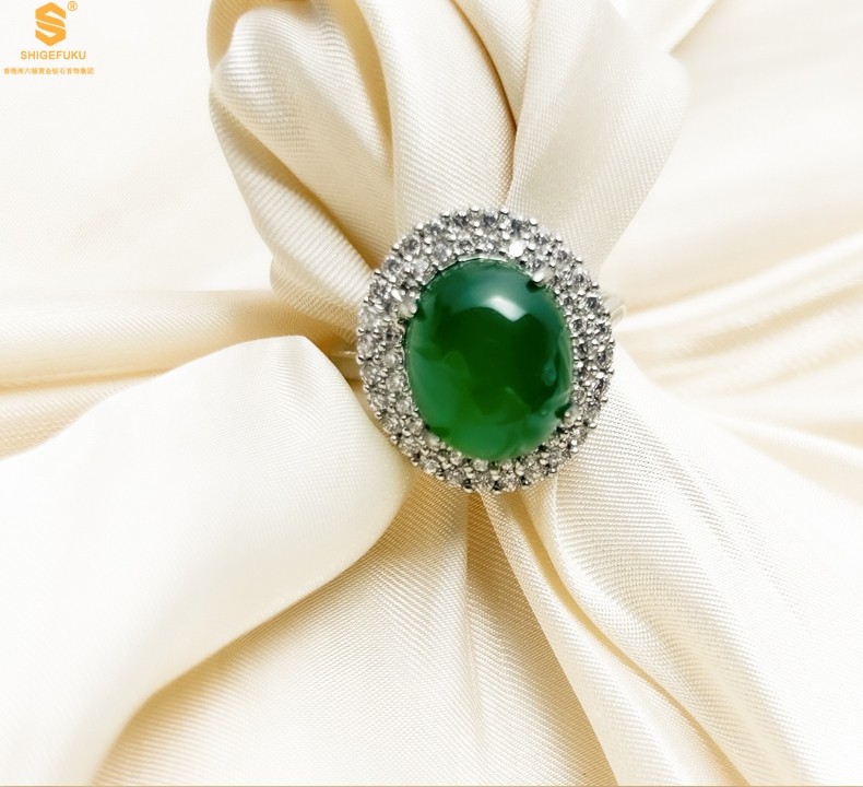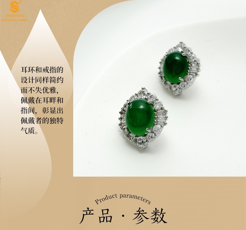 香港周六福黄金钻石首饰祖母绿玉髓三件套(水滴)