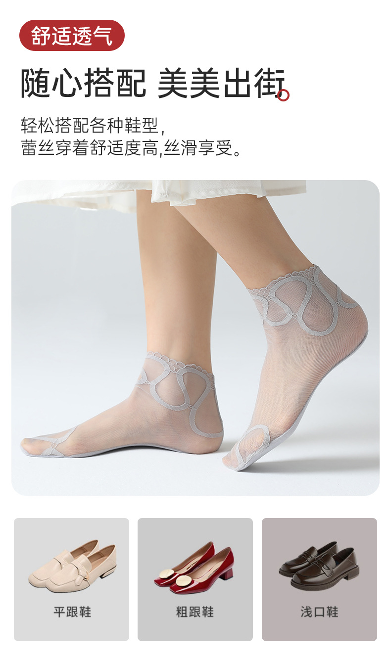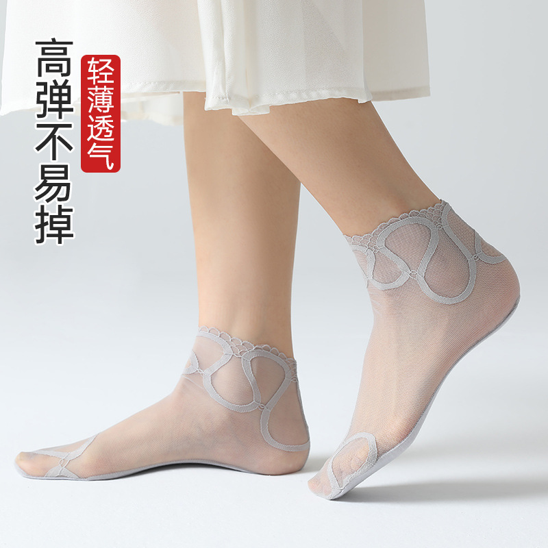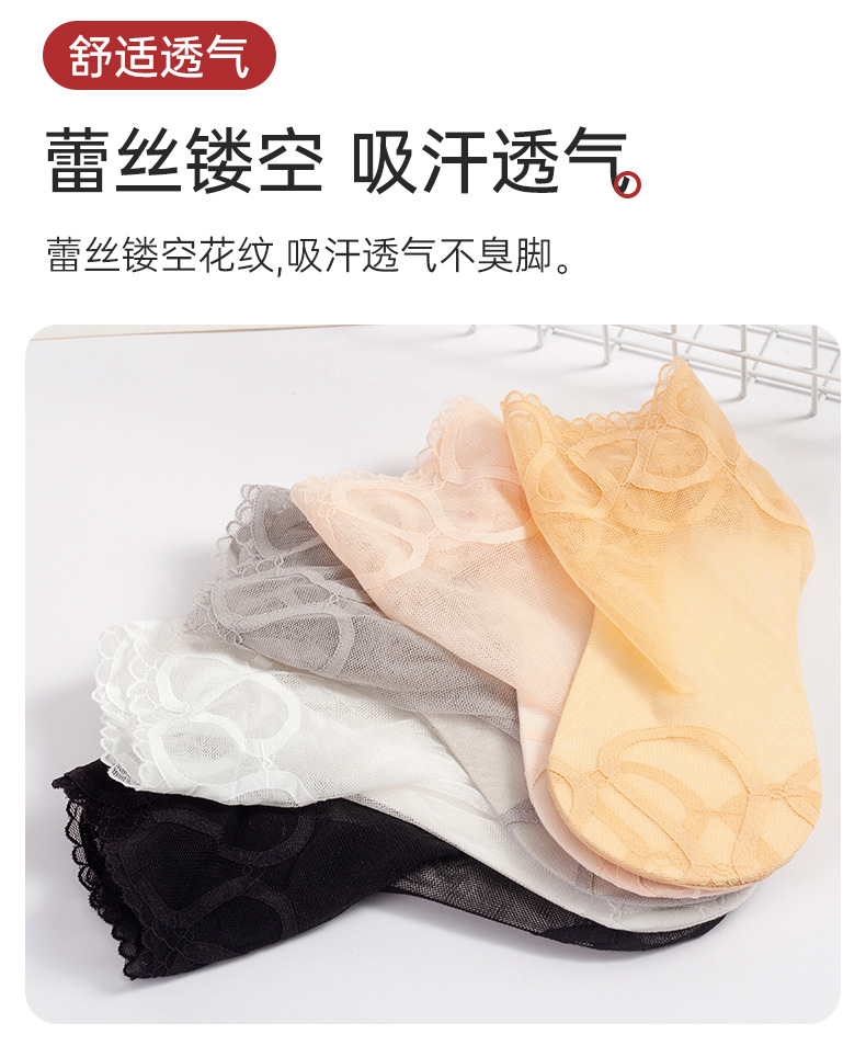 【3双】蕾丝短袜女款夏季薄款透气船袜春秋ins潮百搭网纱棉底水晶袜子女,颜色随机发货