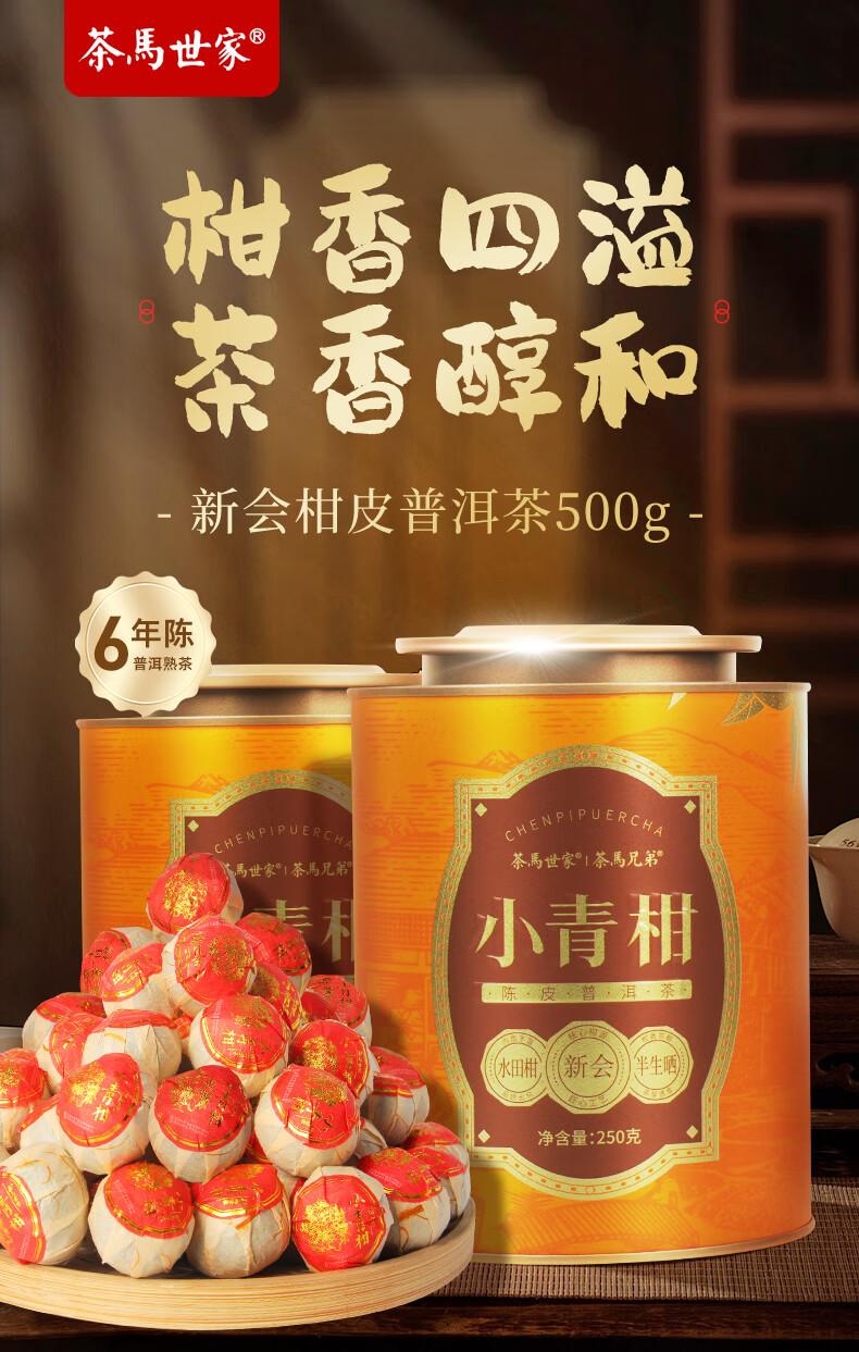 茶马世家新会小青柑普洱茶500g正宗生晒陈皮普洱柑普茶礼盒装送礼