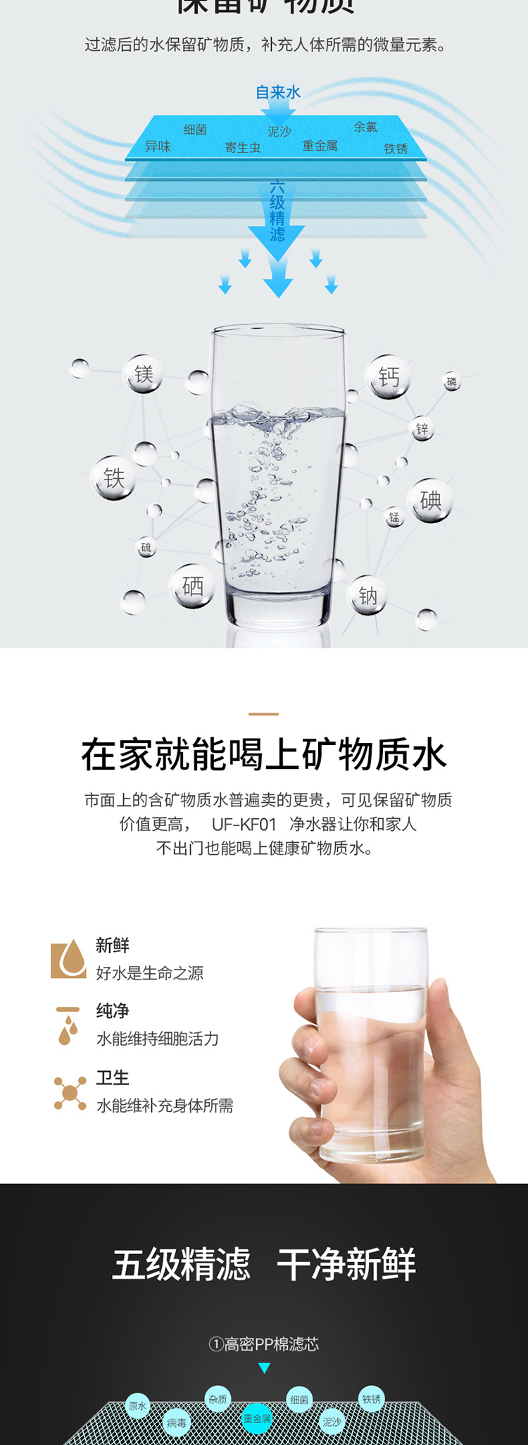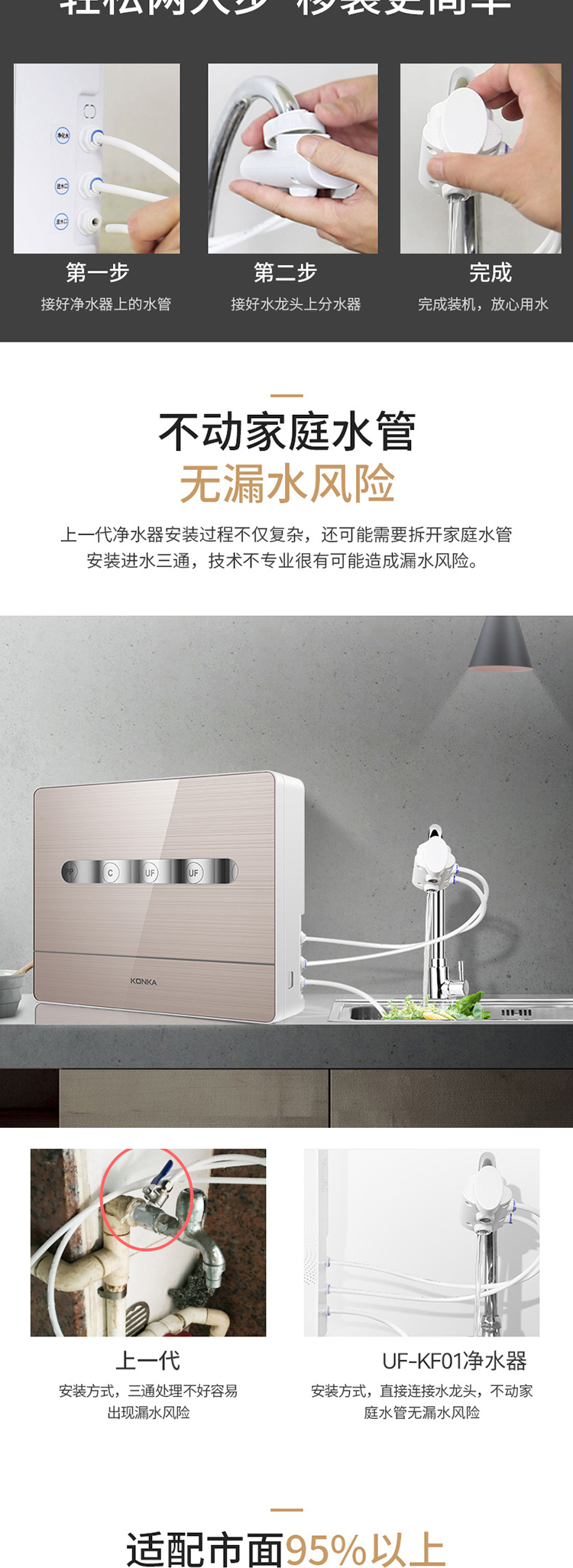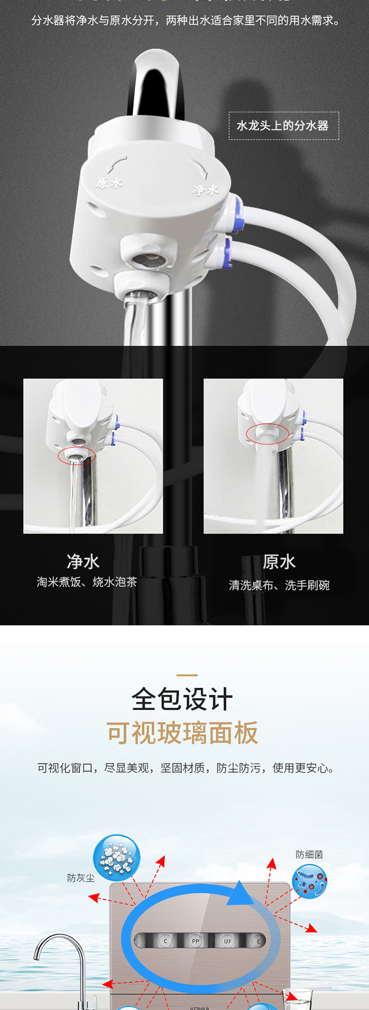 康佳净水器 双出水模式大容量可视玻璃面板超滤机五级过滤超滤膜技术净水器UF- KF01(028)