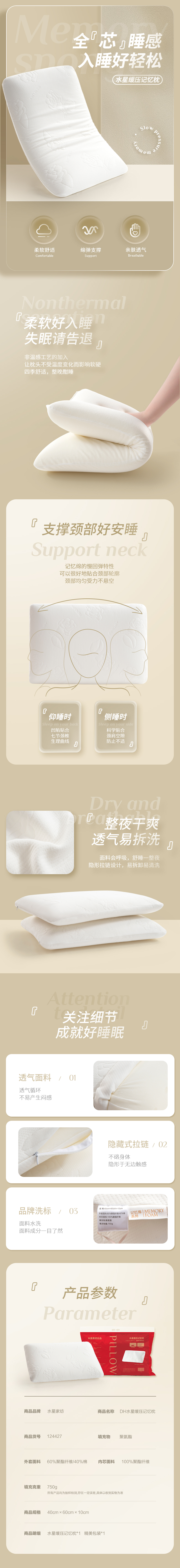 水星家纺缓压记忆枕60*40*10cm柔软透气慢回弹