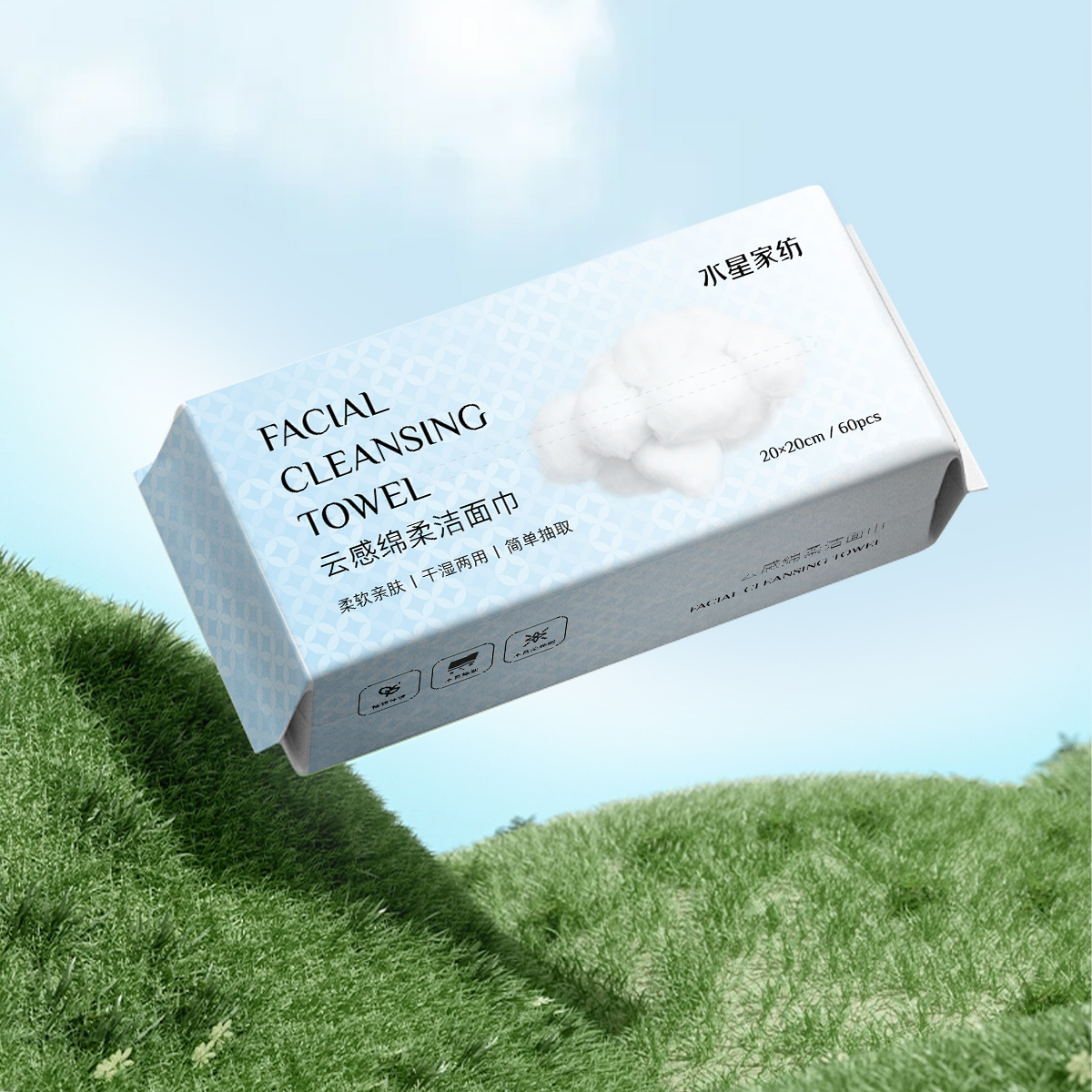 水星家纺云感绵柔洁面巾20cm*20cm白色干湿两用粘胶纤维无甲醛60抽/包