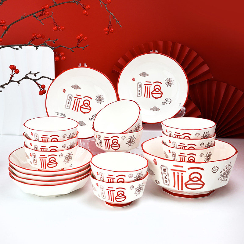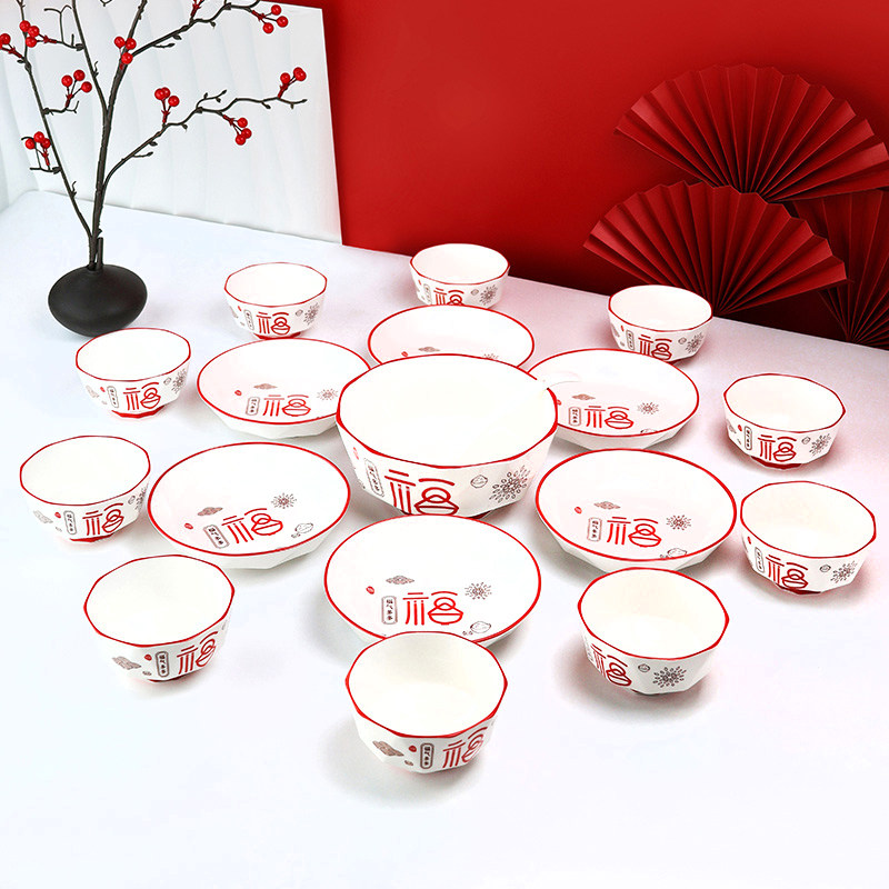 好来宝HLB-MY02福气多多宽边系列39件套泡沫装碗筷
