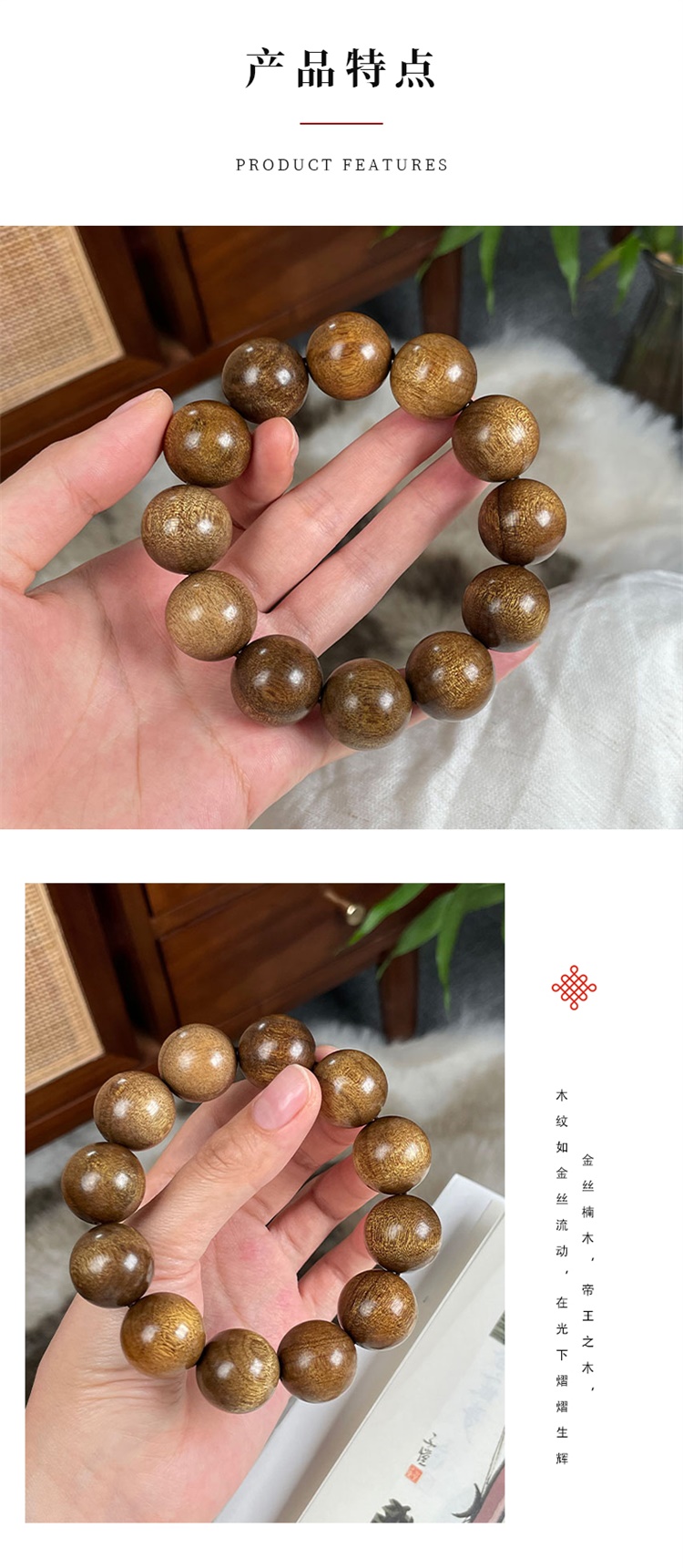 中原楠宫金丝楠木男士手串 珠子直径2.0cm【每证一品】