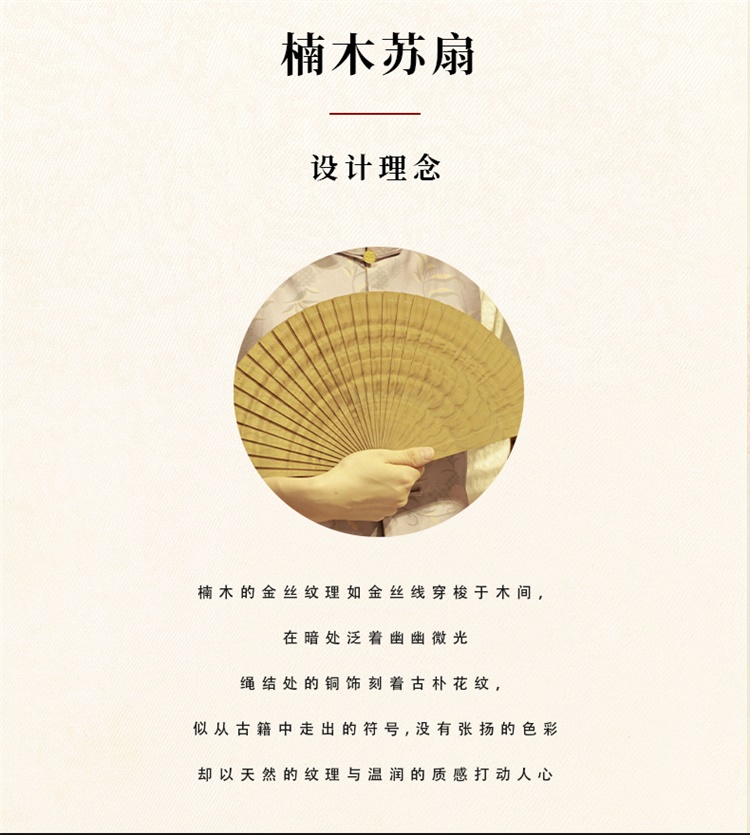 中原楠宫金丝楠木苏扇女士扇子【扇子合上长度:21cm,扇子展开直径:47cm】【每证一品】