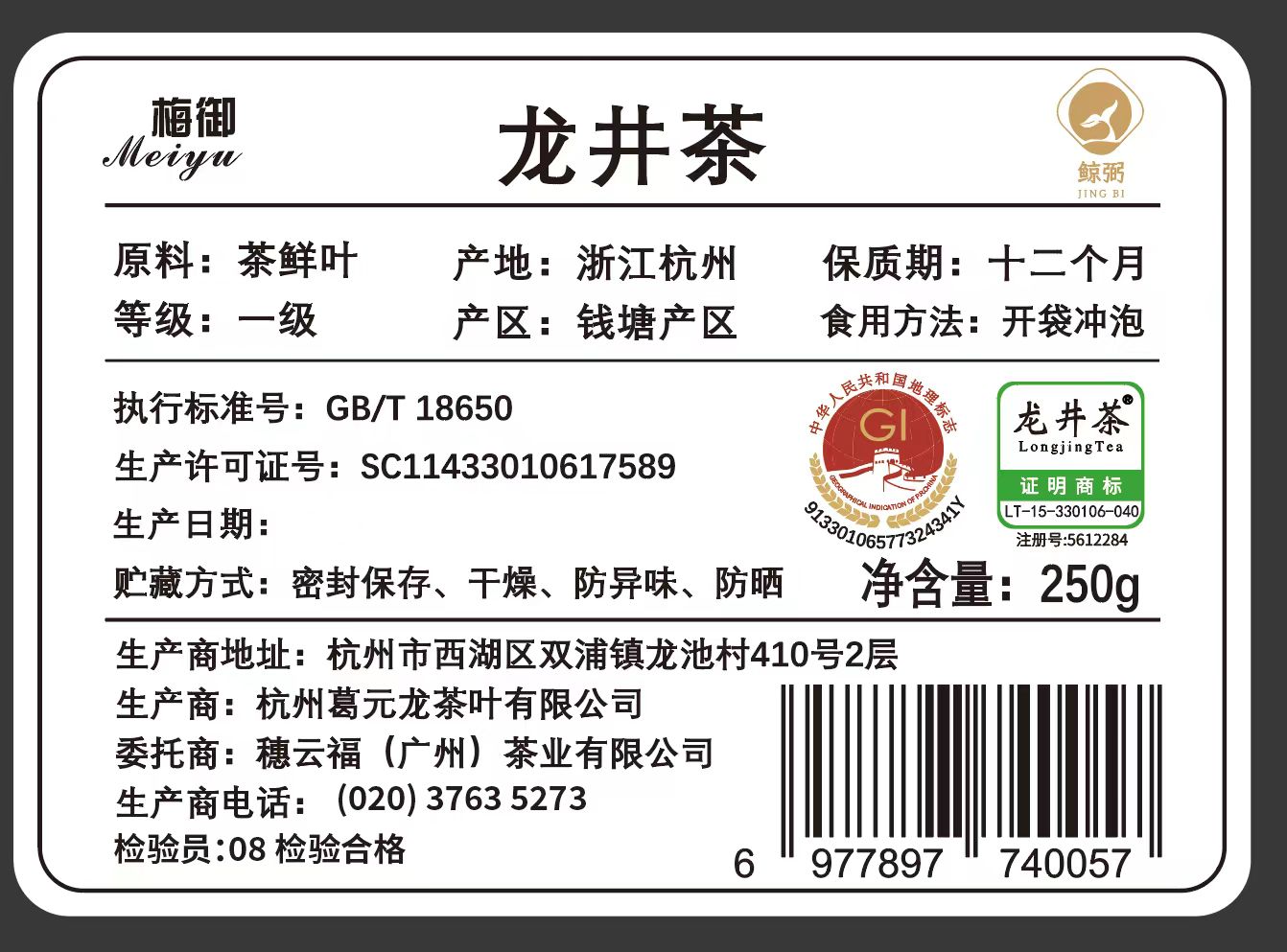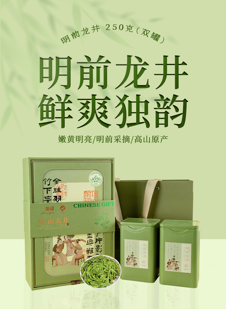 鲸弼龙井茶明前龙井茶250g/盒 精美手提茶叶礼盒装【蓝/绿包装随机发】
