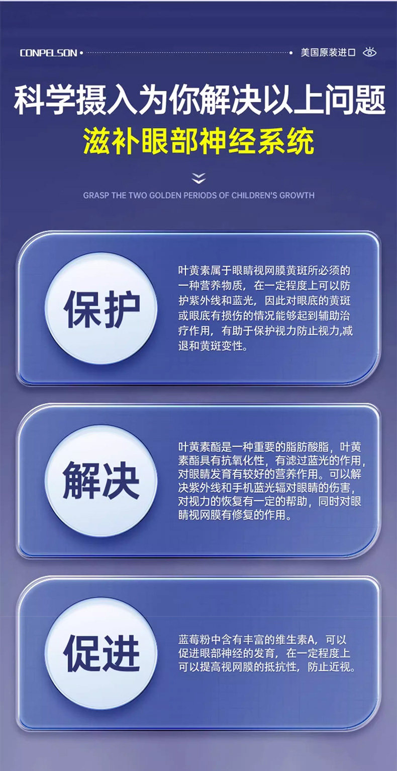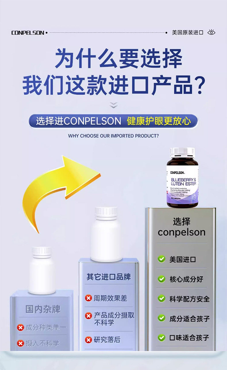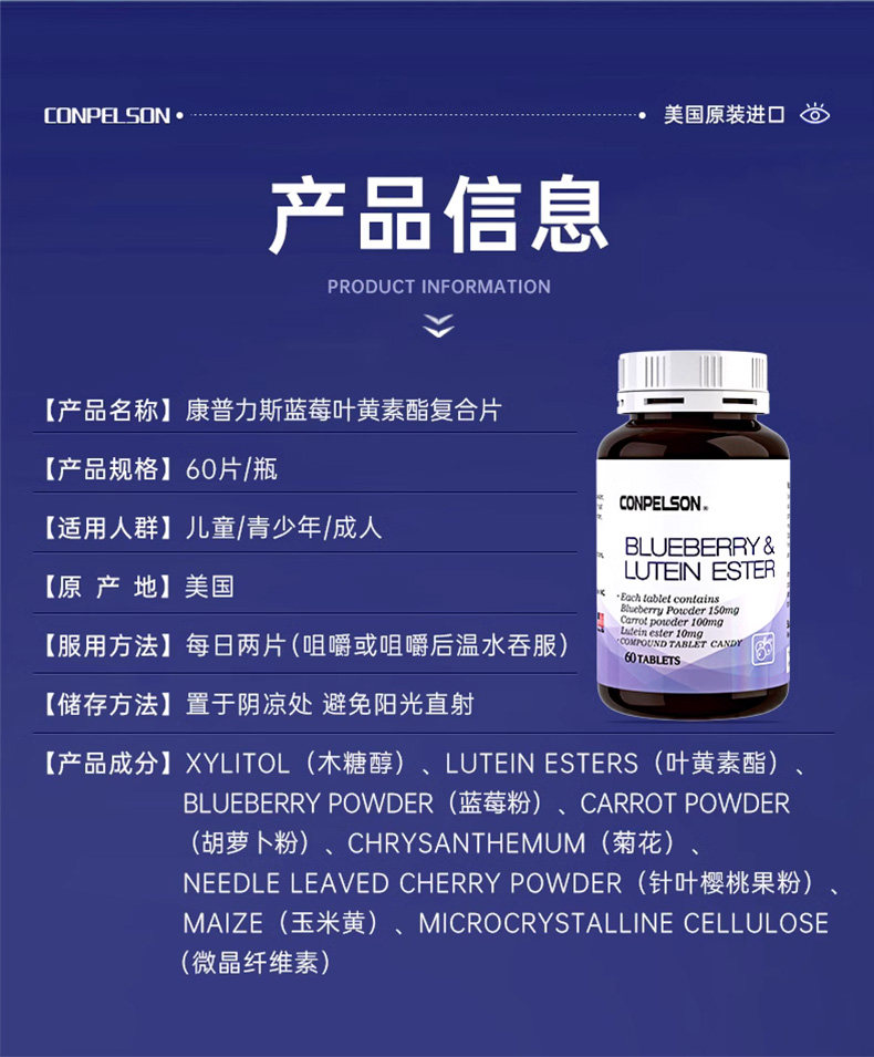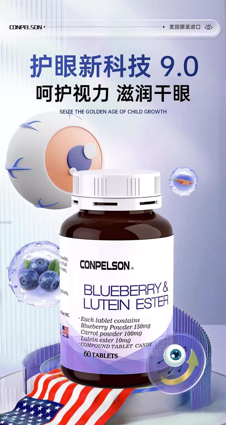 美国CONPELSON康普力斯蓝莓叶黄素酯压片糖果60片