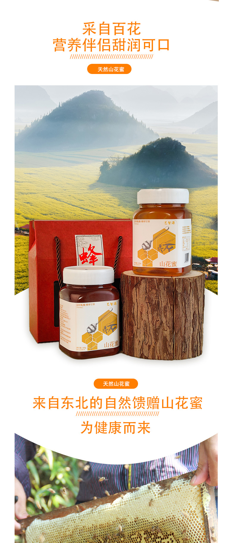 艺智源纯正天然蜂蜜礼盒寒地生态原蜜大自然的馈赠营养均衡健康饮品纯正天然蜂蜜500g*2【椴树雪蜜礼盒/山花蜜礼盒】可选