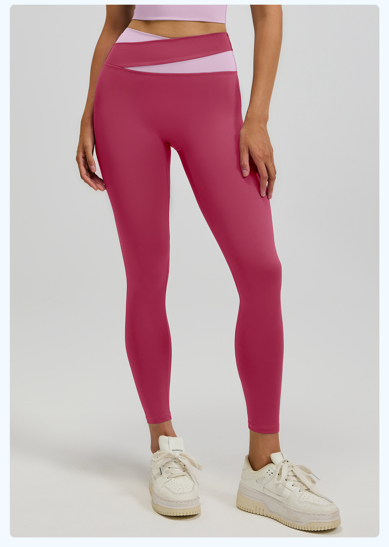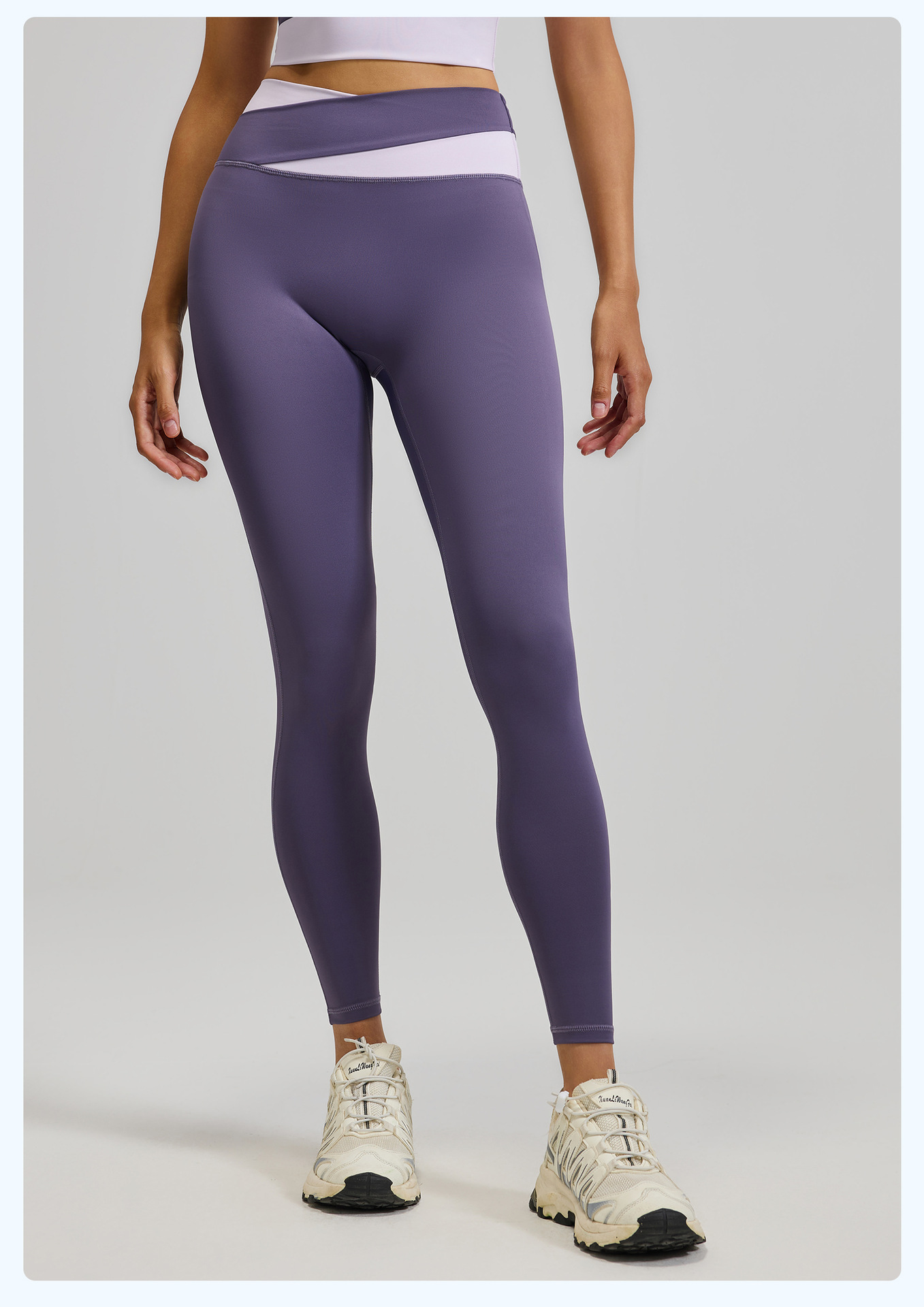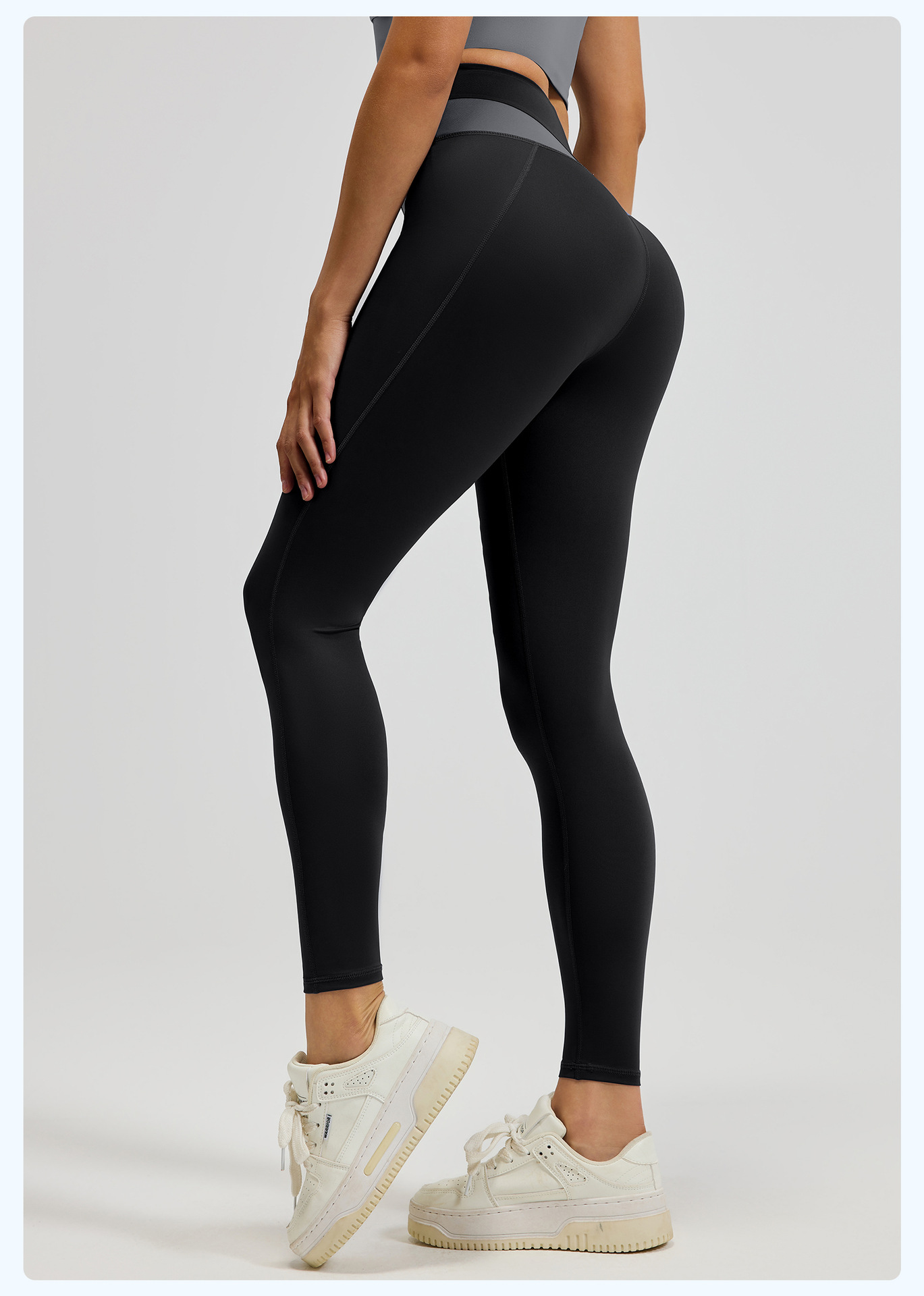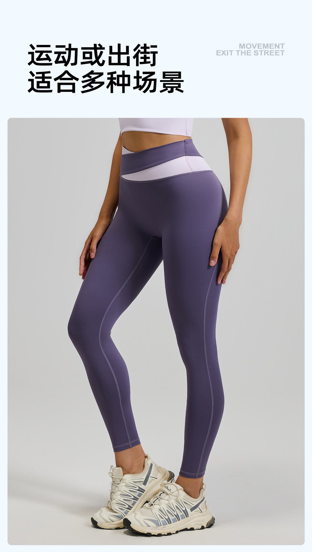 裸感拼接瑜伽裤高腰提臀健身弹力健身长裤跑步运动裤