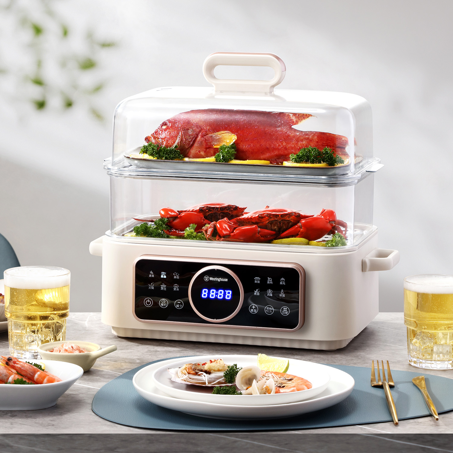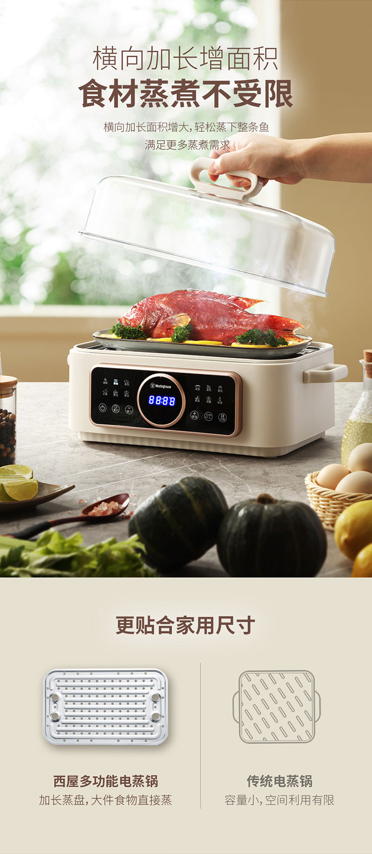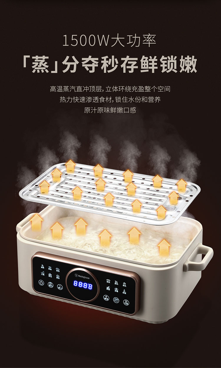 西屋Westinghouse多功能电蒸锅 普区包邮 17L容量不粘内胆上蒸下煮触控操作 WZL525D