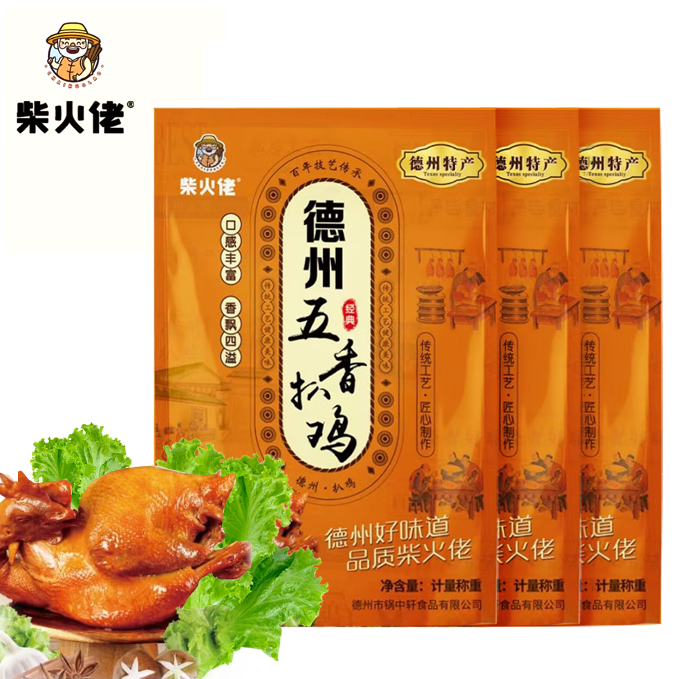 柴火佬五香扒鸡 德州风味扒鸡 优惠3只装 600g/袋 保质期:8个月