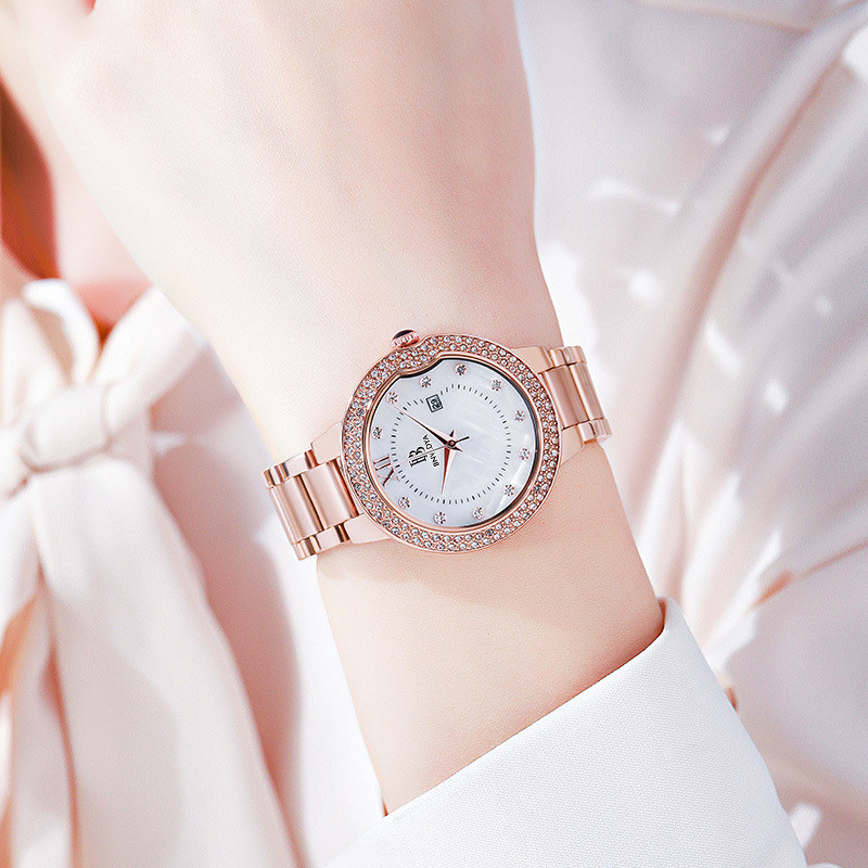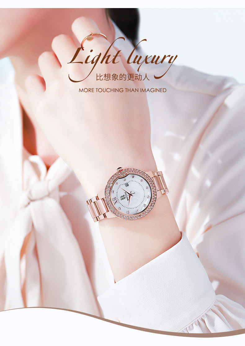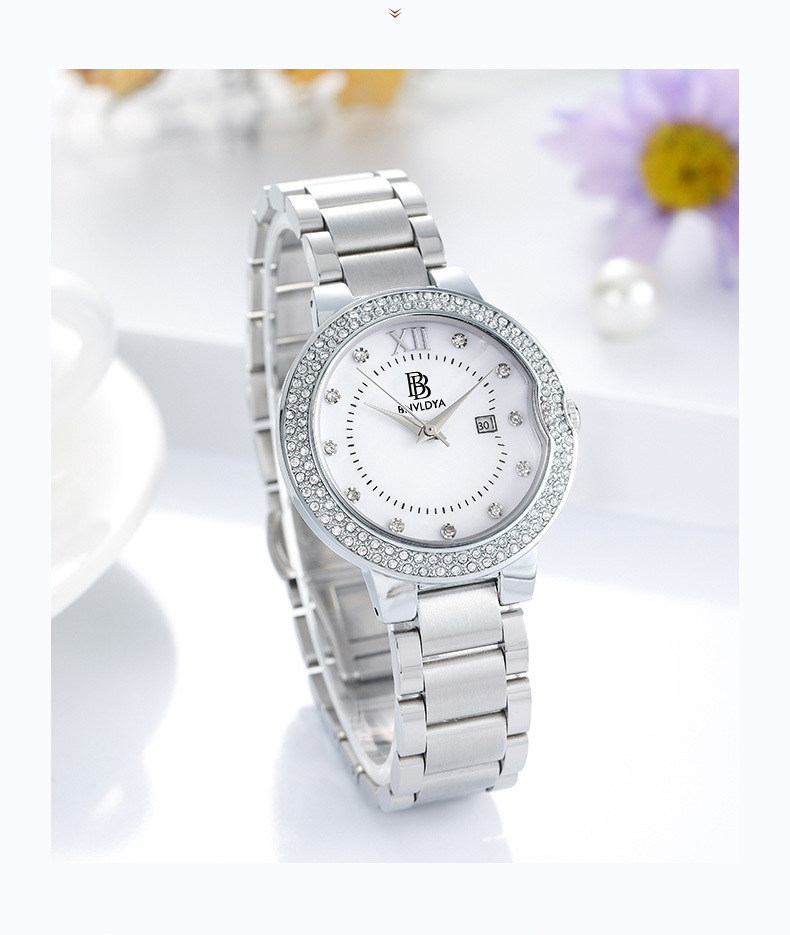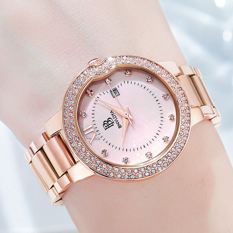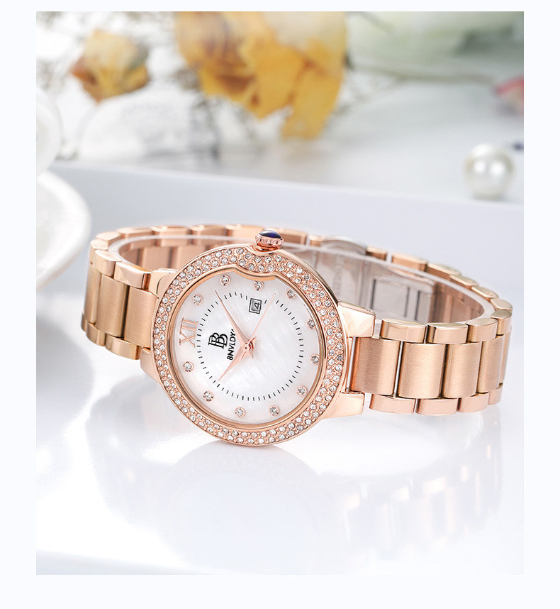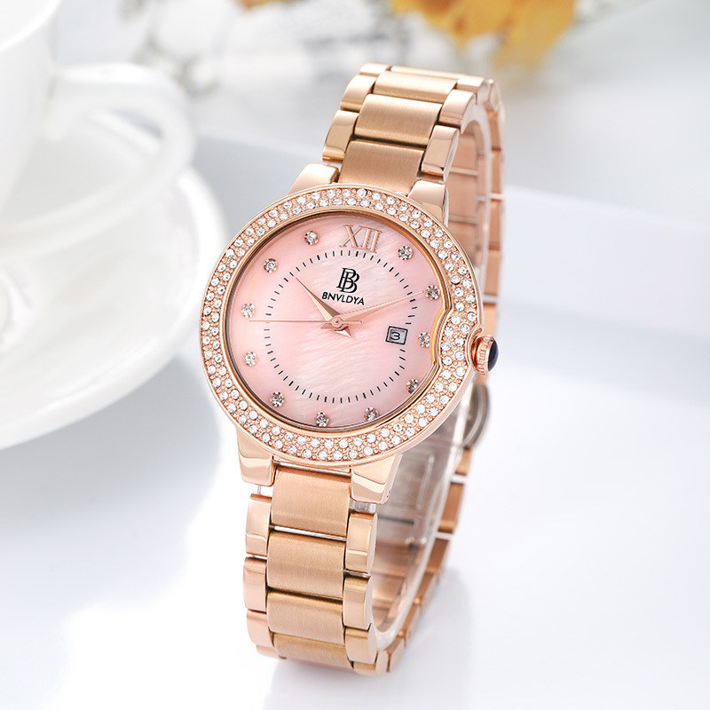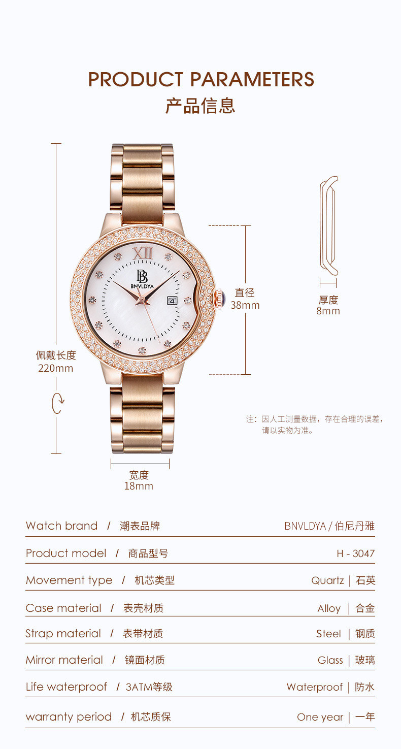 BNVLDYA伯尼丹雅腕表新款正品大表盘个性女表钢带手表女韩版时尚贝母镶钻防水石英手表
