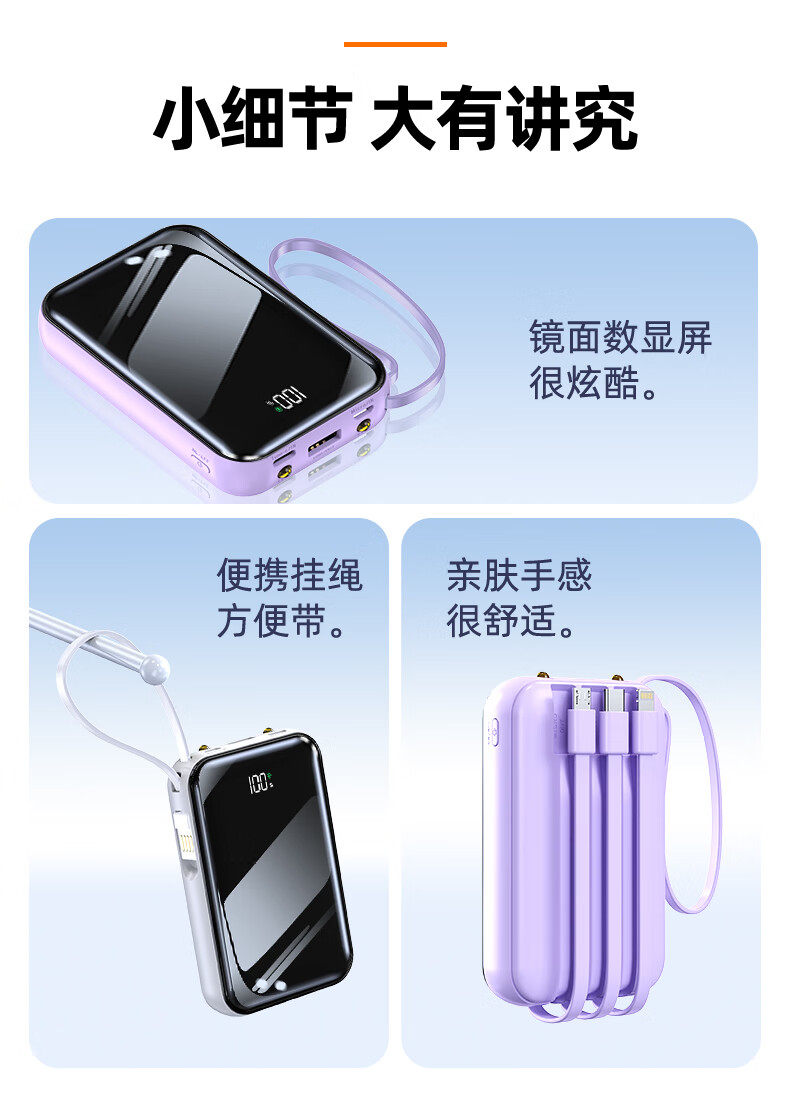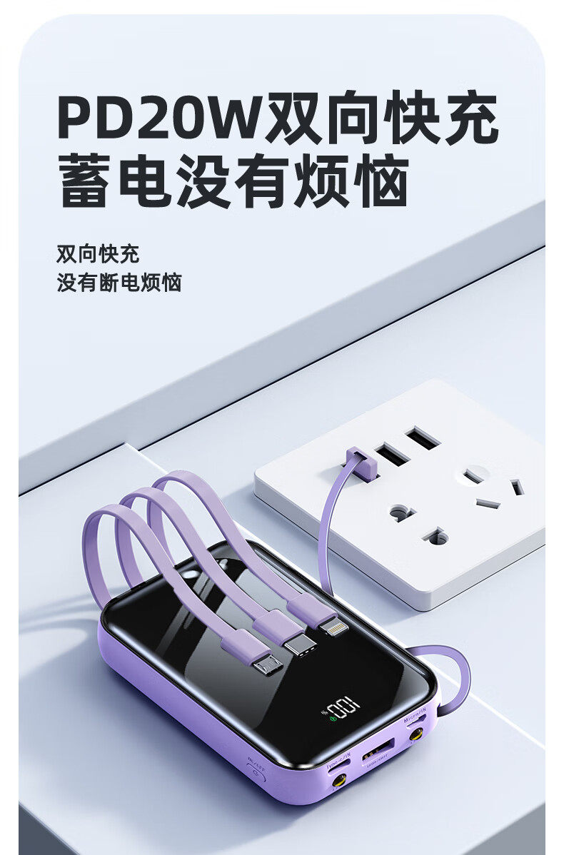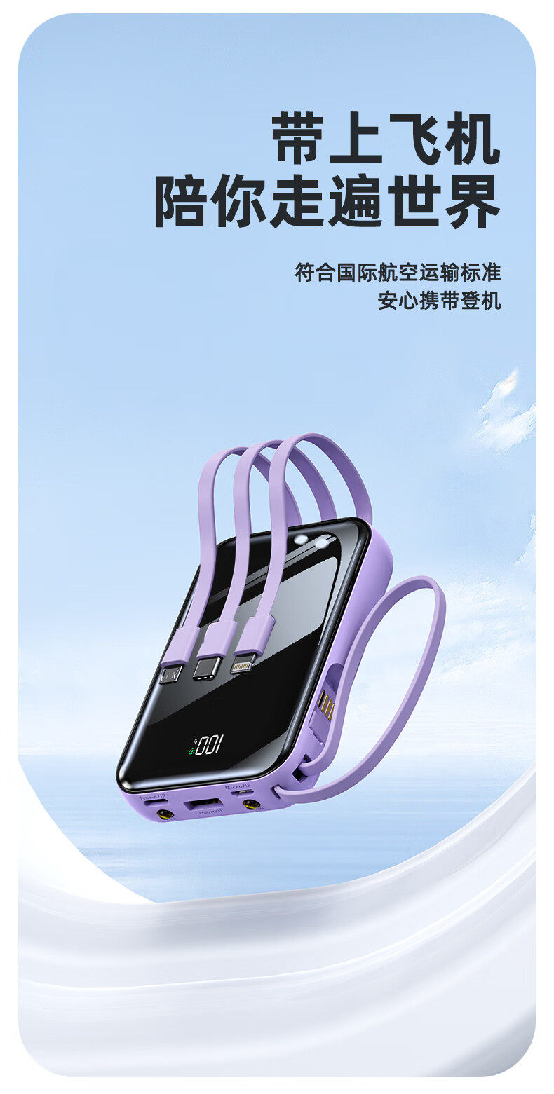 亰维渡【3C认证】多功能超级快充10000mAh大容量充电宝便携小巧移动电源可上飞机高铁适用苹果华为小米 实标10000mAh丨 JHS-01