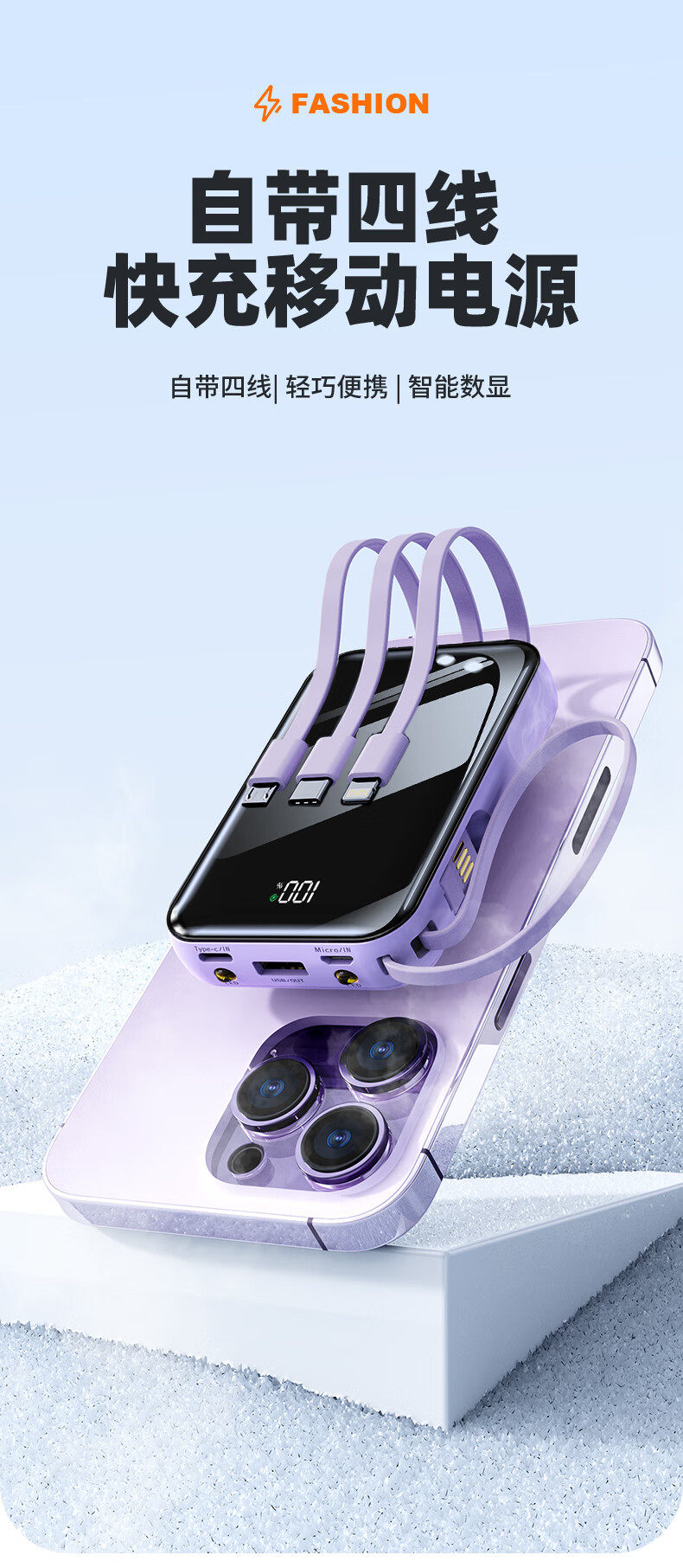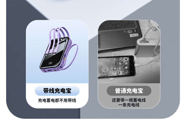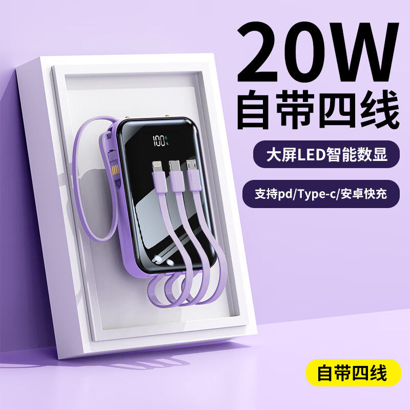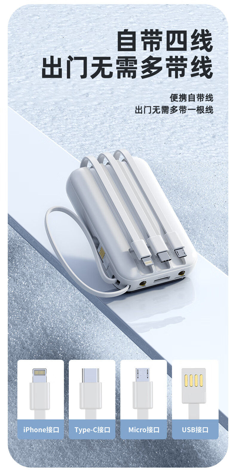 亰维渡【3C认证】多功能超级快充10000mAh大容量充电宝便携小巧移动电源可上飞机高铁适用苹果华为小米 实标10000mAh丨 JHS-01