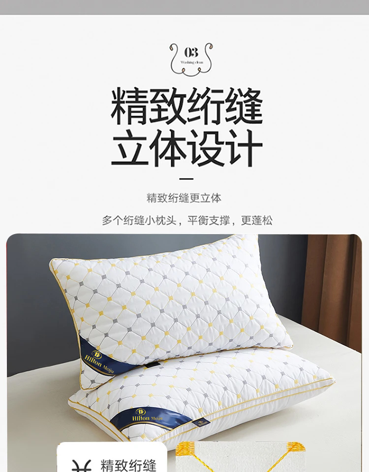 【热评500+】Hllton Meiju 升级款满天星刺绣 羽丝绒轻奢阻螨抗菌枕芯 单人护颈枕(1只装 含手提无纺布礼袋)型号:HL-1602