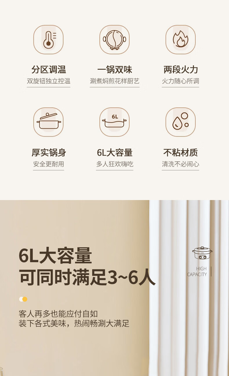 韩国现代电火锅 鸳鸯电火锅 JZG-C603
