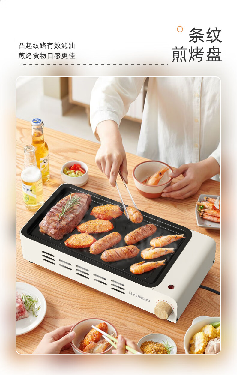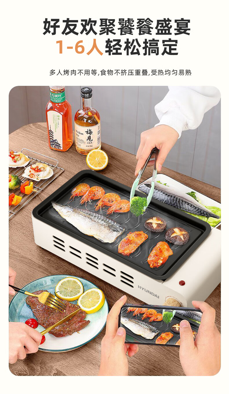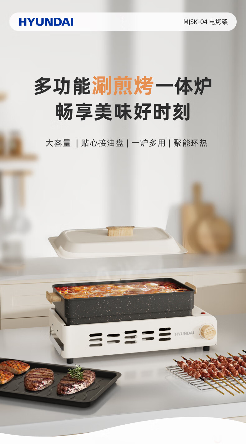 韩国现代电烤架多功能料理锅电烤盘 电火锅 涮煎烤一体锅 MJSK-04
