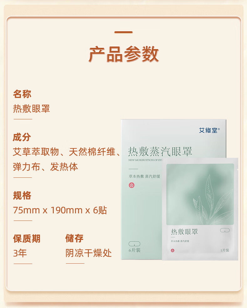 艾修堂蒸汽眼罩热敷睡眠专用遮光艾灸学生护眼罩男女通用眼贴(6片装)