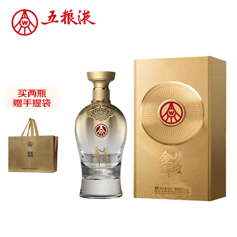 五粮液股份 金碧辉煌 鎏金版 浓香型白酒 52度500ml*2瓶 中秋送礼