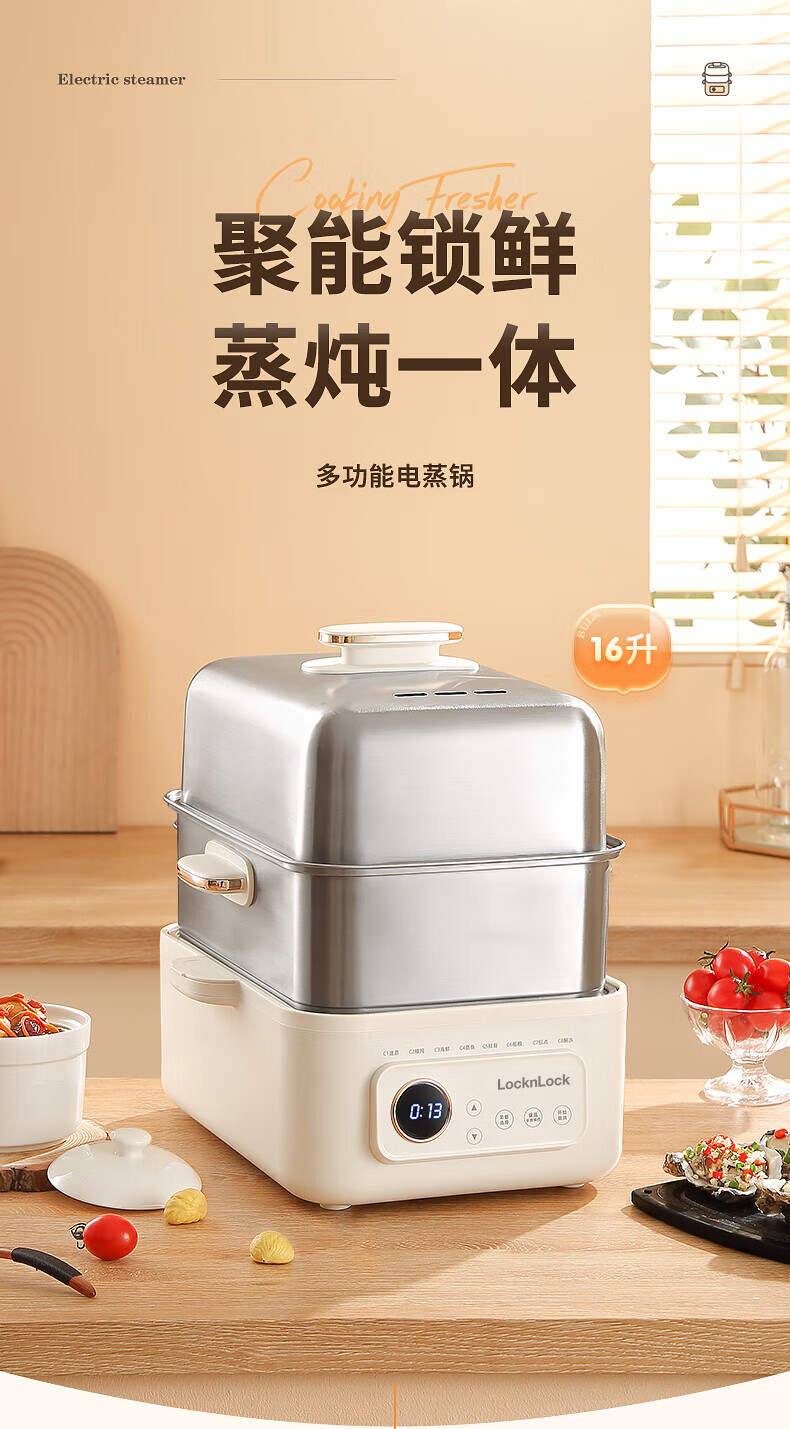 乐扣乐扣 多功能电蒸锅 16L 电炖锅家用电热锅 EJP3225IVY