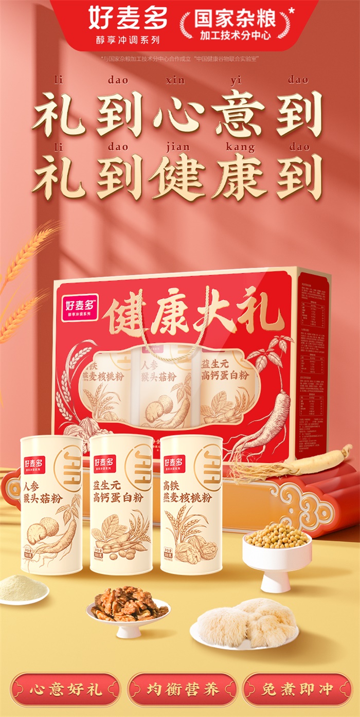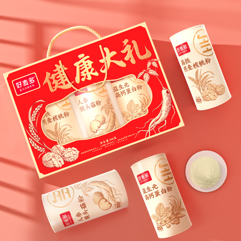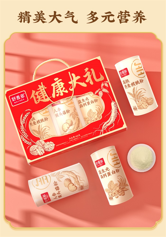 好麦多燕麦人参猴头菇粉健康大礼900g【高铁燕麦核桃粉300g*1罐+人身猴头菇粉300g*1罐+益生元高钙蛋白粉300g*1罐】
