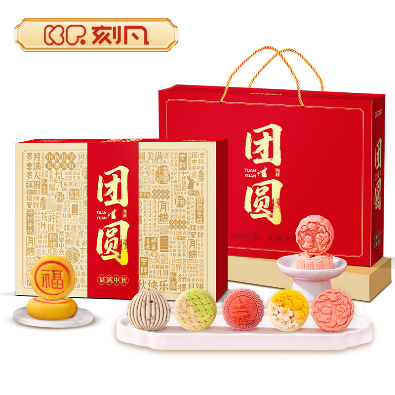 【多口味15枚】刻凡·团圆820g 芋泥红豆五仁奶黄流心枣泥紫薯莲蓉蛋黄广式月饼 多种口味精美礼盒节日送礼企业福利品下午茶糕点点心中秋月饼礼盒