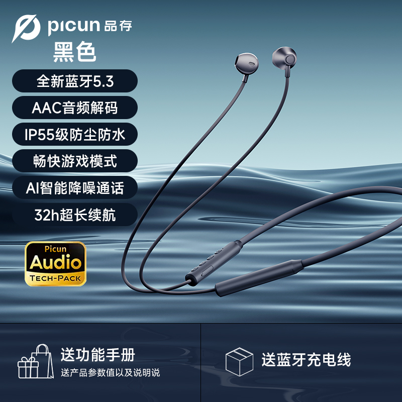 Picun品存 X5蓝牙耳机 无线入耳式运动耳机 挂脖磁吸设计 IPX5级防水 电竞游戏/健身跑步/通勤必备 黑色/卡其白