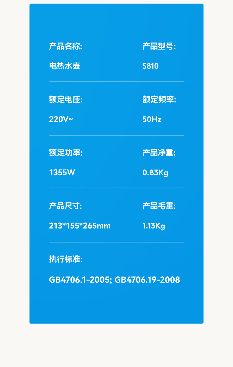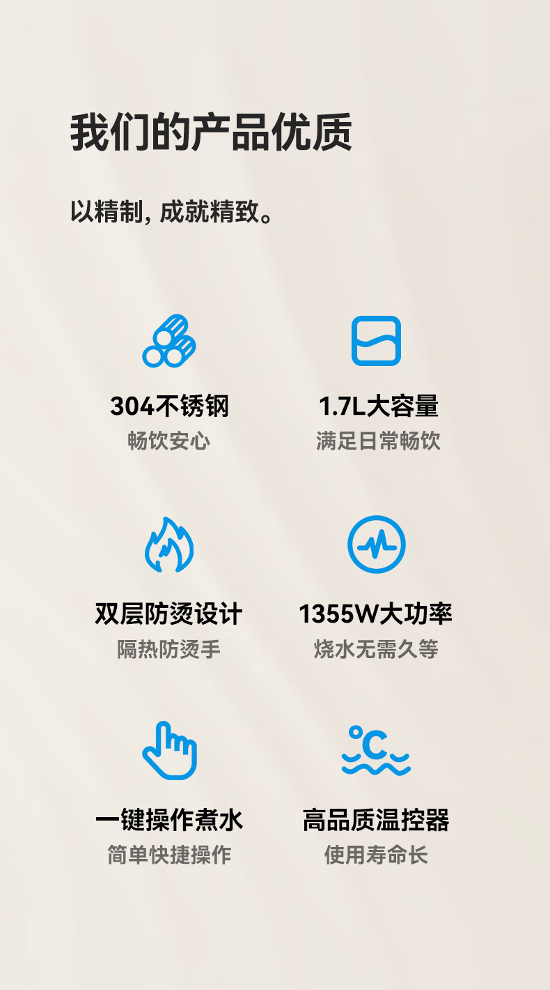 乐视1.7L加厚材质大容量电热水壶304材质双层防烫S810 无缝工艺