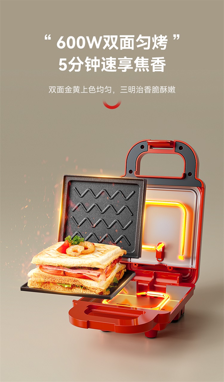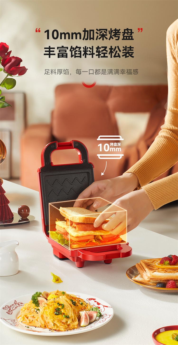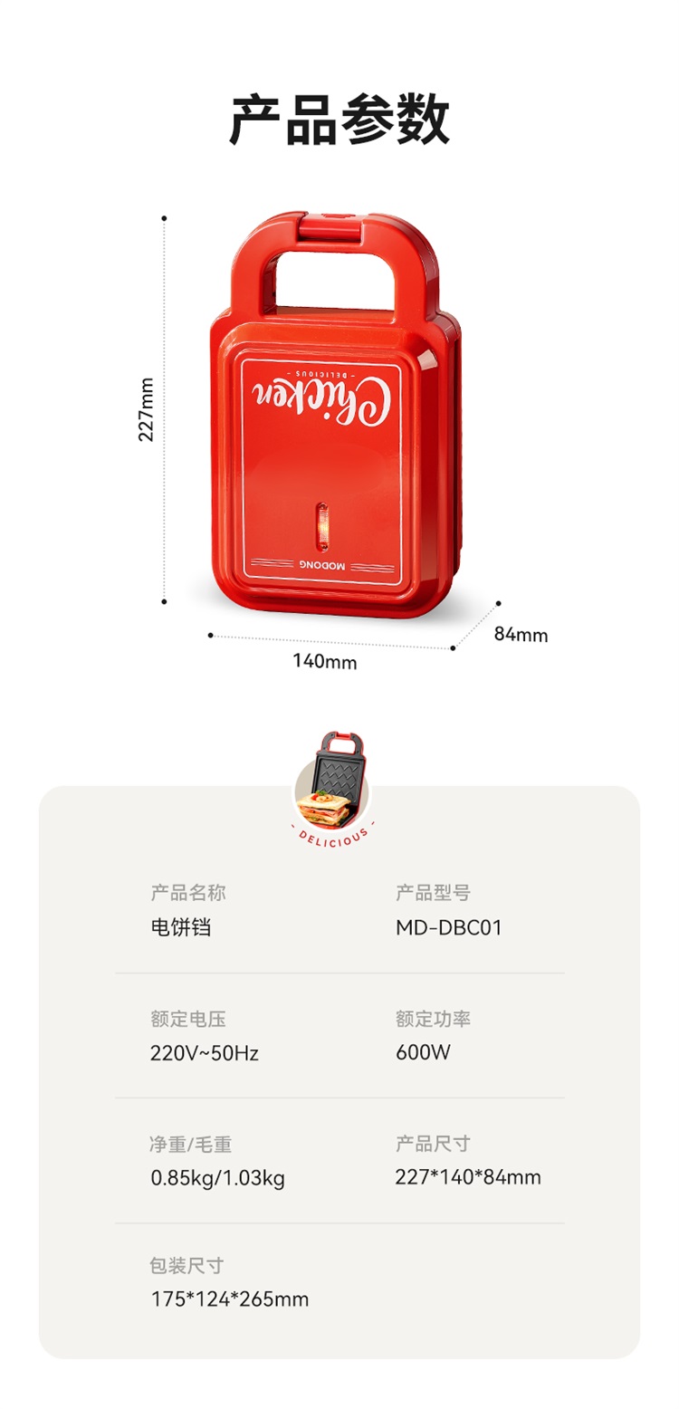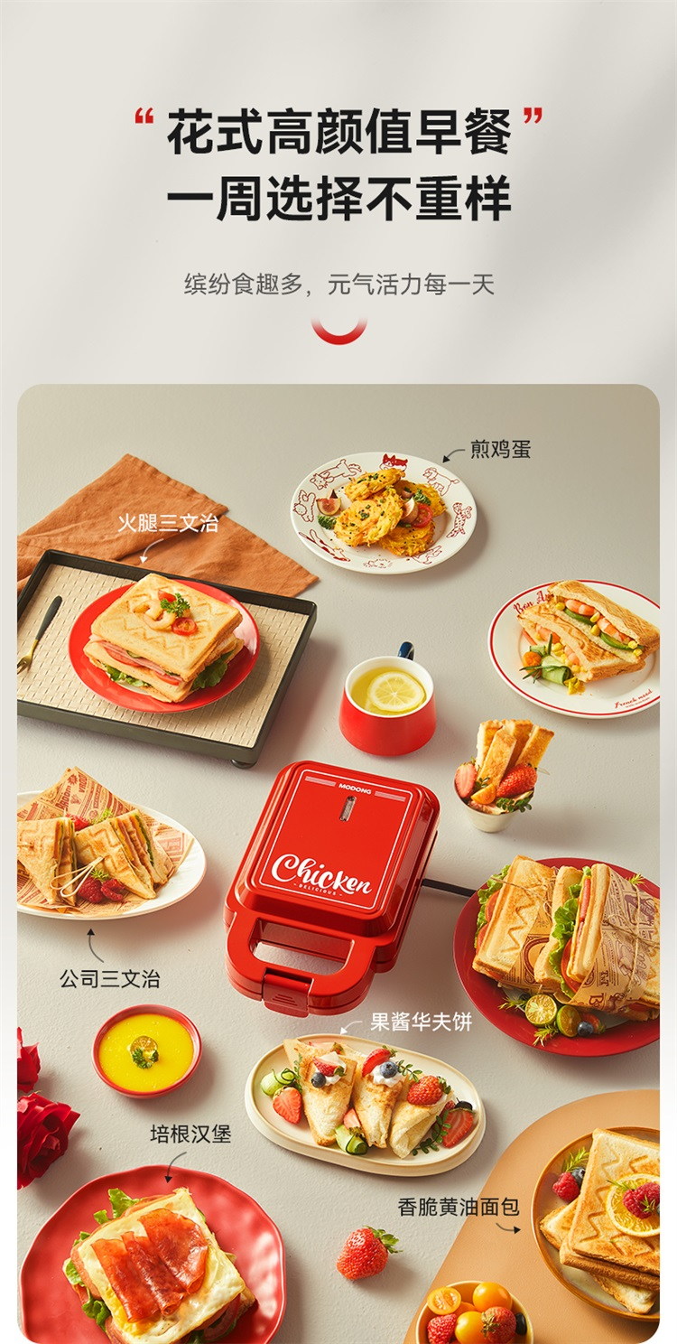 摩动电饼铛 家用三明治机早餐机小型面包机煎饼机煎蛋神器MD-DBC01