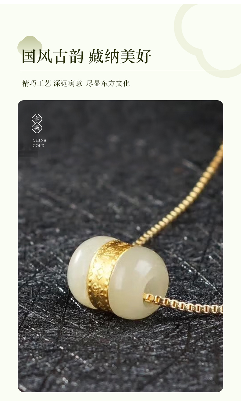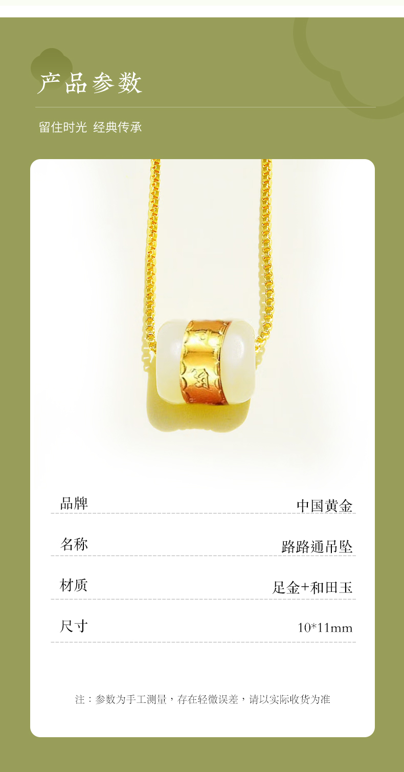中国黄金路路通和田玉吊坠TGPJ012《证书+吊牌+质保单+礼盒+手提袋》品牌值得信赖 更多款式搜索【中国黄金】赠送1K合金链子