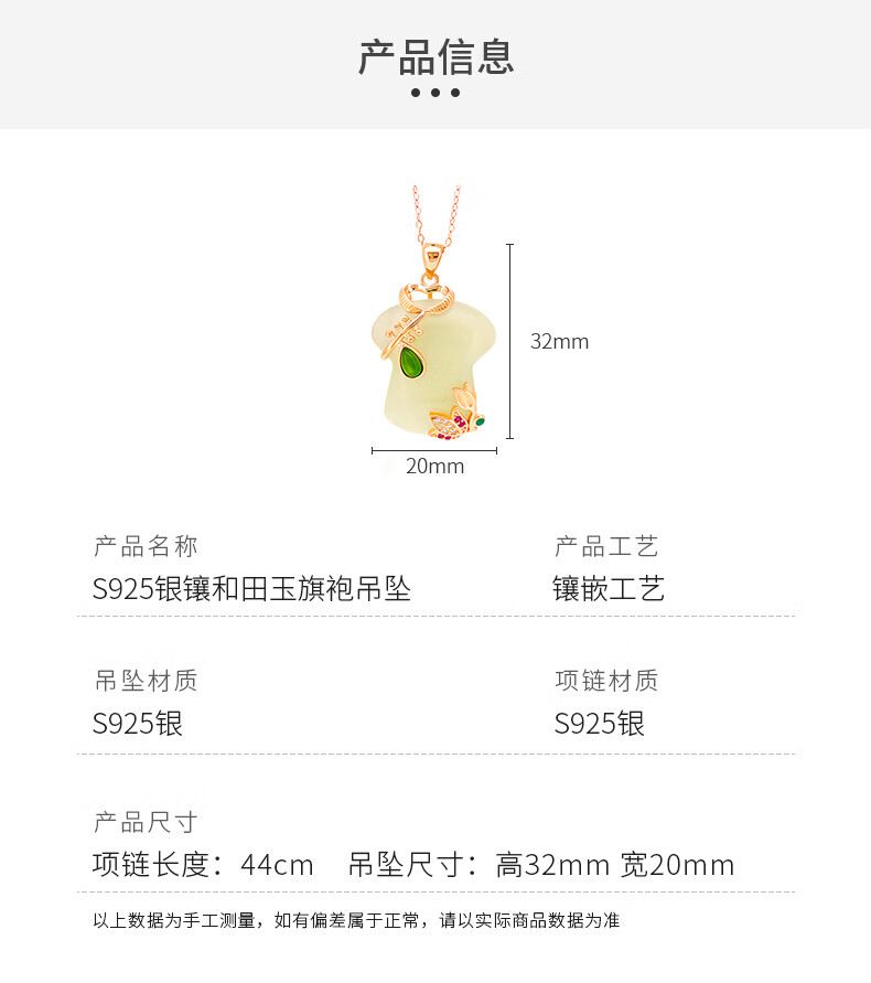 顺丰普区包邮 周囍缘和田玉旗袍吊坠S925银 国风女款吊坠 女友节日礼物推荐款 带证书 一物一证