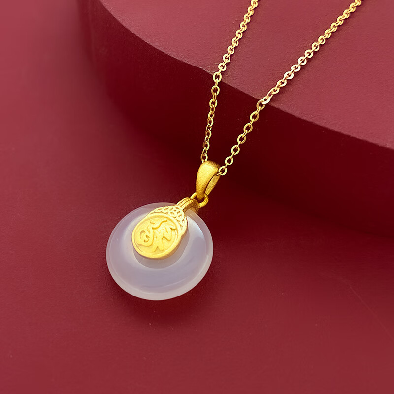 顺丰普区包邮 周囍缘 S925银镶玉髓福字平安扣吊坠 国风女款吊坠 礼物推荐款 送女友生日礼物节日礼物 一物一证