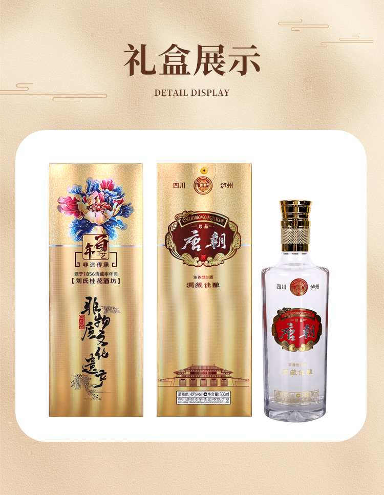 唐朝 洞藏佳酿 四川唐朝老窖集团出品 42度浓香型白酒 500ml/瓶 单瓶礼盒装 两瓶附赠手提袋