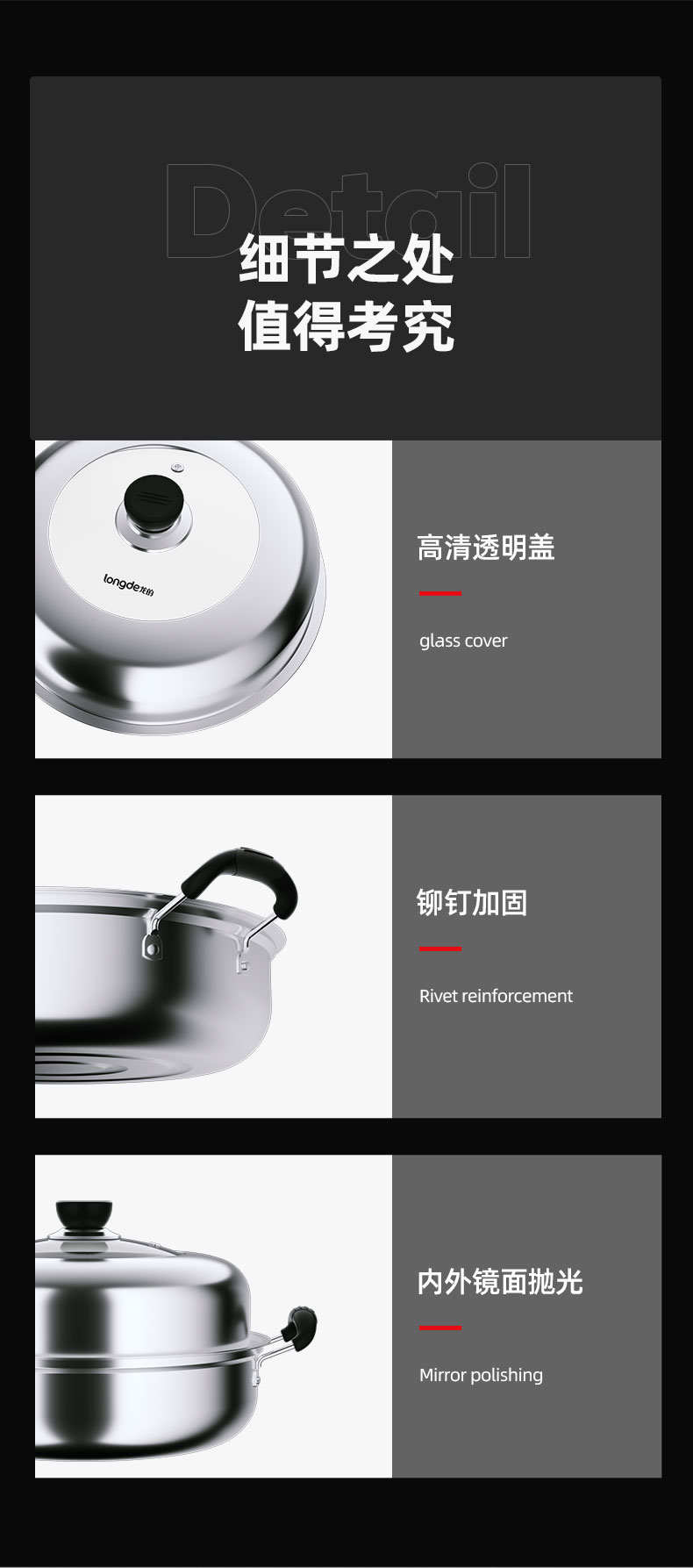 龙的longde厨房锅具 不锈钢厨具套装组合 燃气灶电陶炉电热炉 LD-TG136 28cm