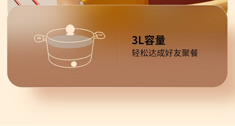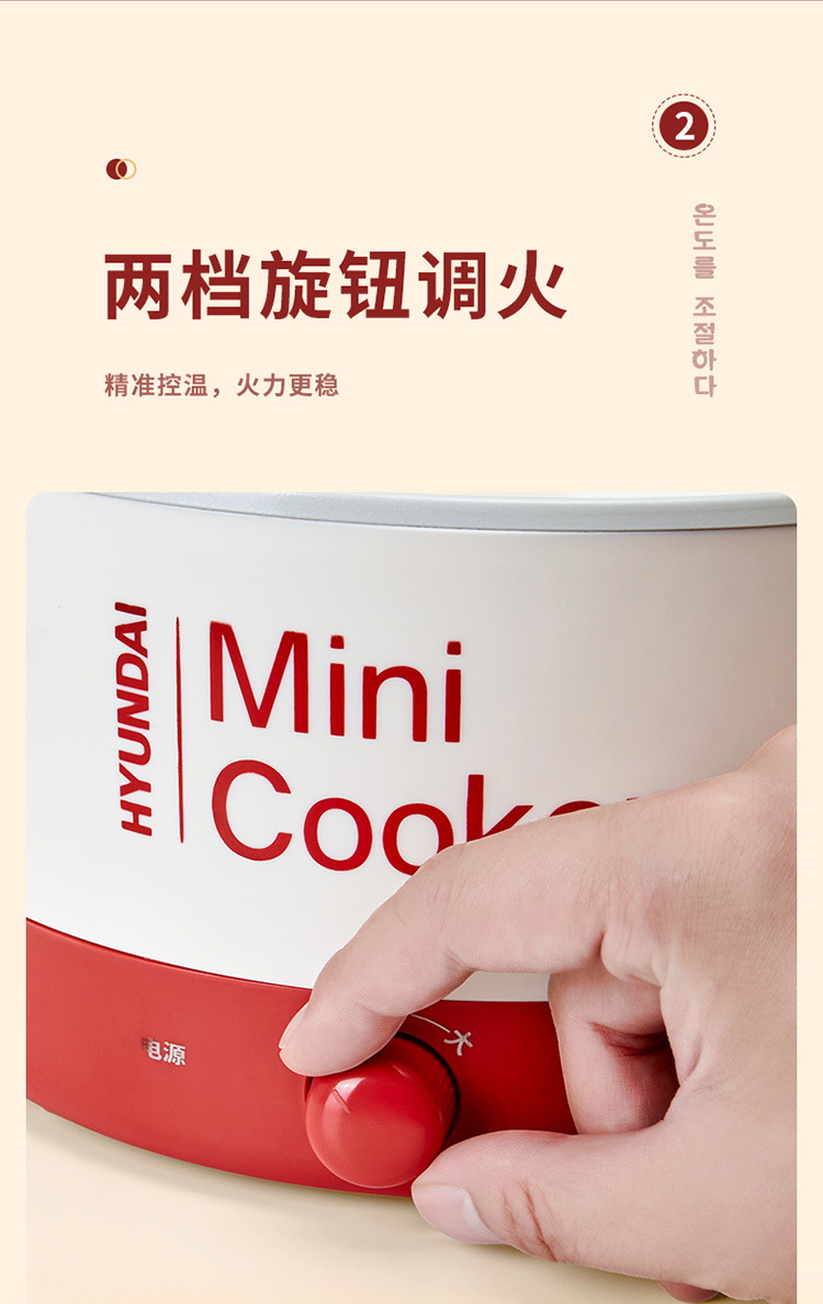 HYUNDAI韩国现代多功能电煮锅3L小型电火锅宿舍寝室小煮锅学生泡面锅多功能电火锅蒸煮一体迷你单人用电饭煲红色QC-HHG153