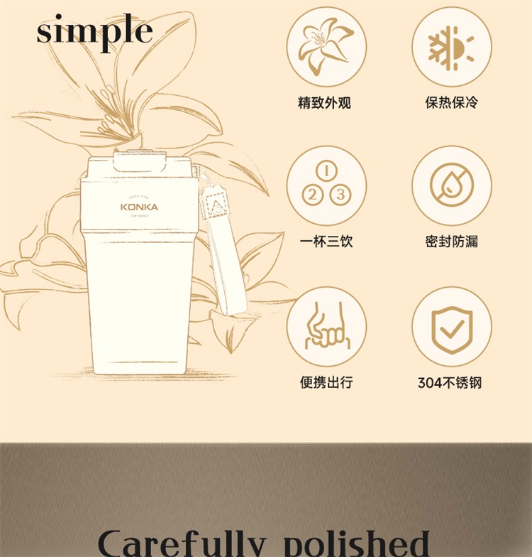康佳KONKA保温杯白色 保温保冷一杯三饮便携出行易清洗KBWB-4901(白色)