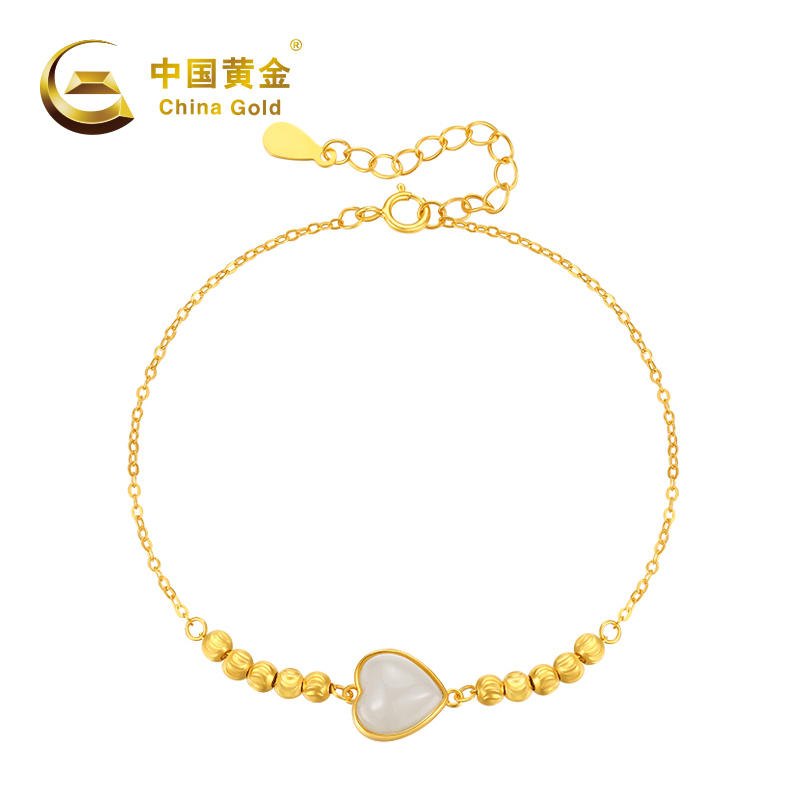 中国黄金珠宝首饰冰心玉洁 S925银镶和田玉手链手饰