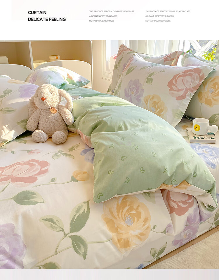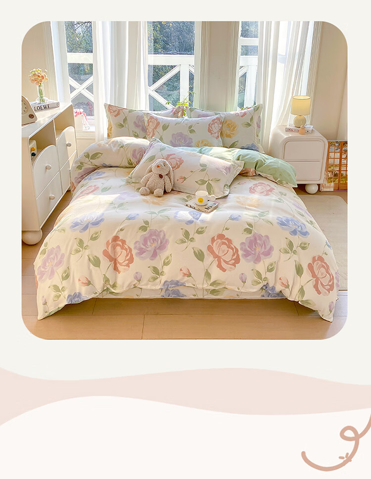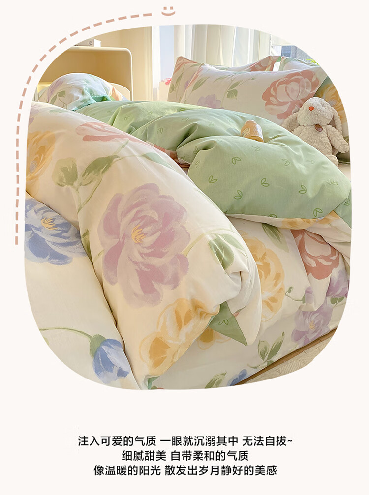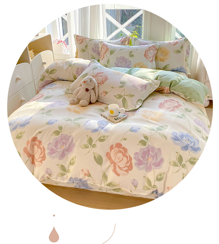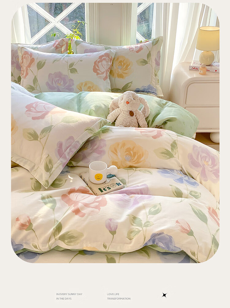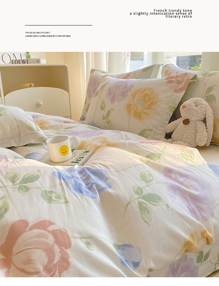 花花公子2025新款100%棉斜纹喷气12868系列四件套玫瑰花海 适用1.8m床 礼盒装