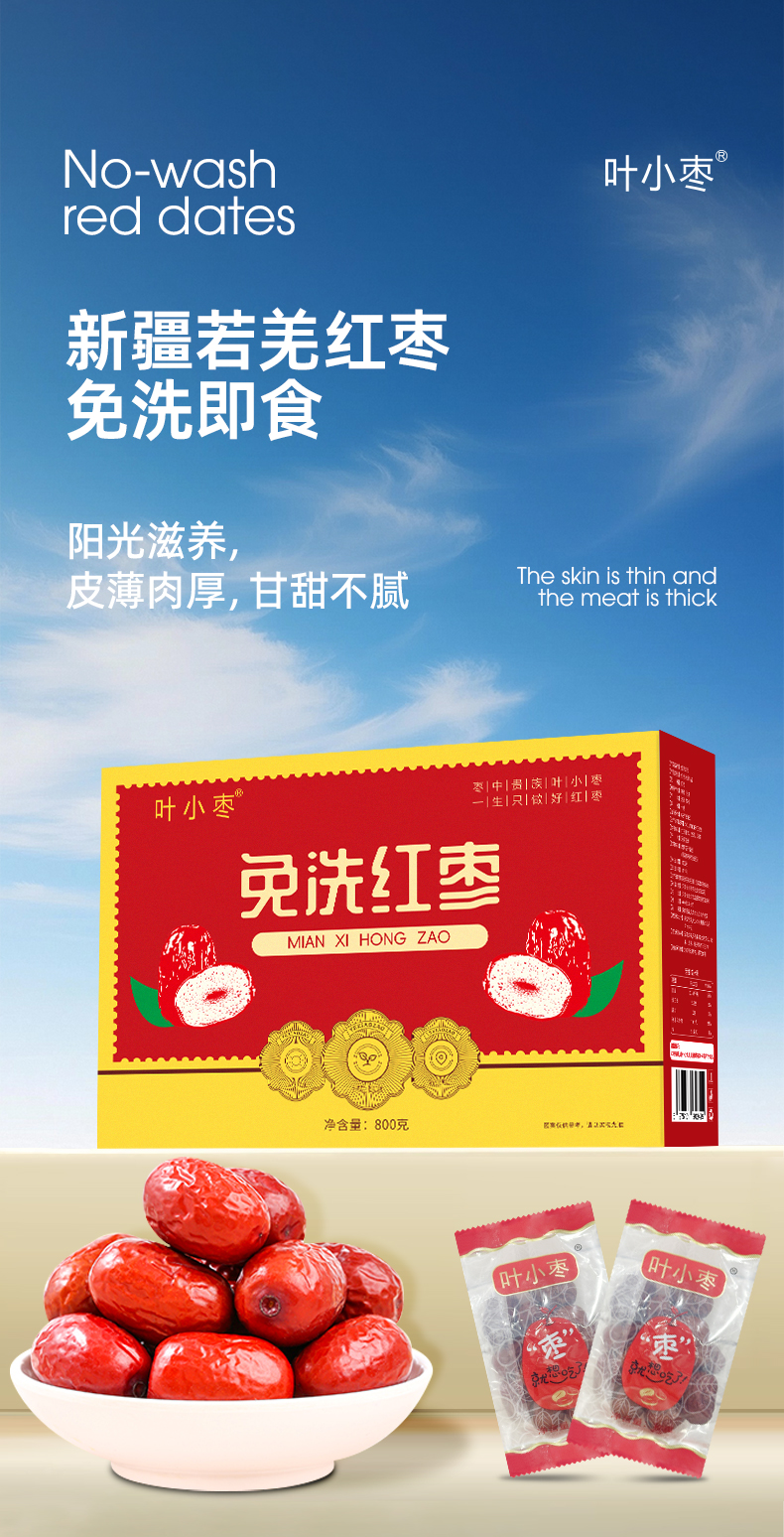 叶小枣高端红枣礼盒新疆若羌红枣免洗即食皮薄肉厚甘甜不腻红枣礼盒800g