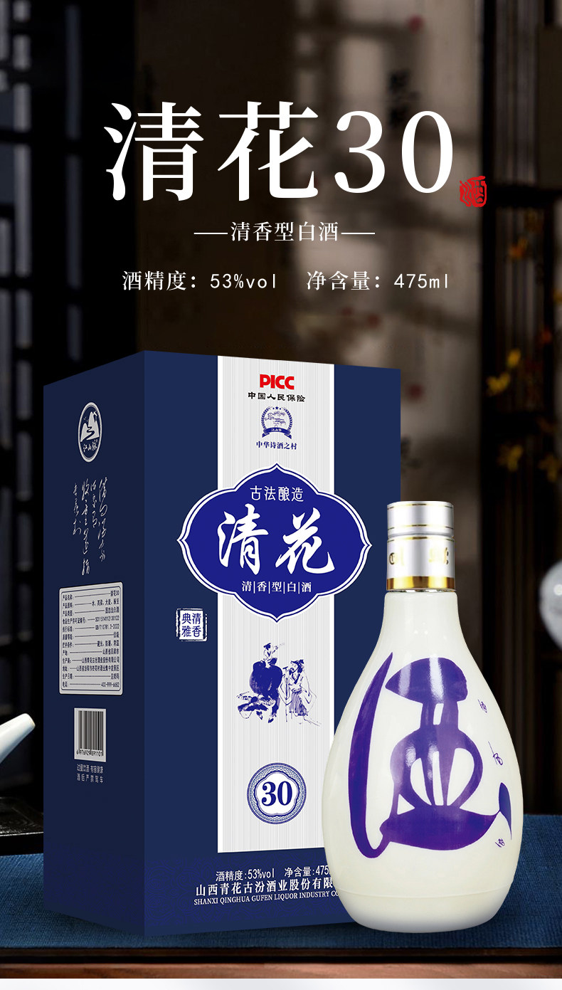江山脉清花30酒.古法酿造白酒500ml*6瓶
