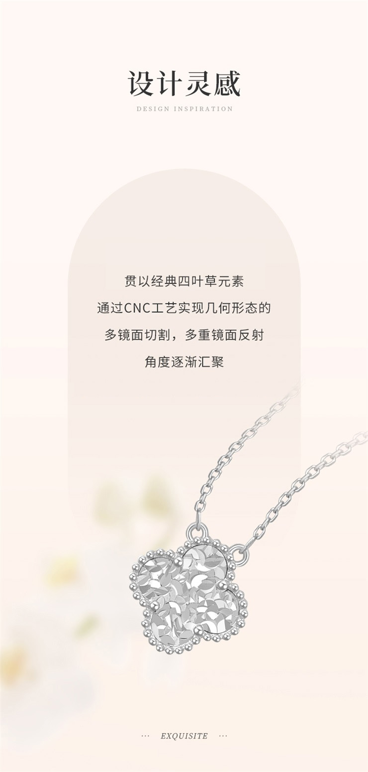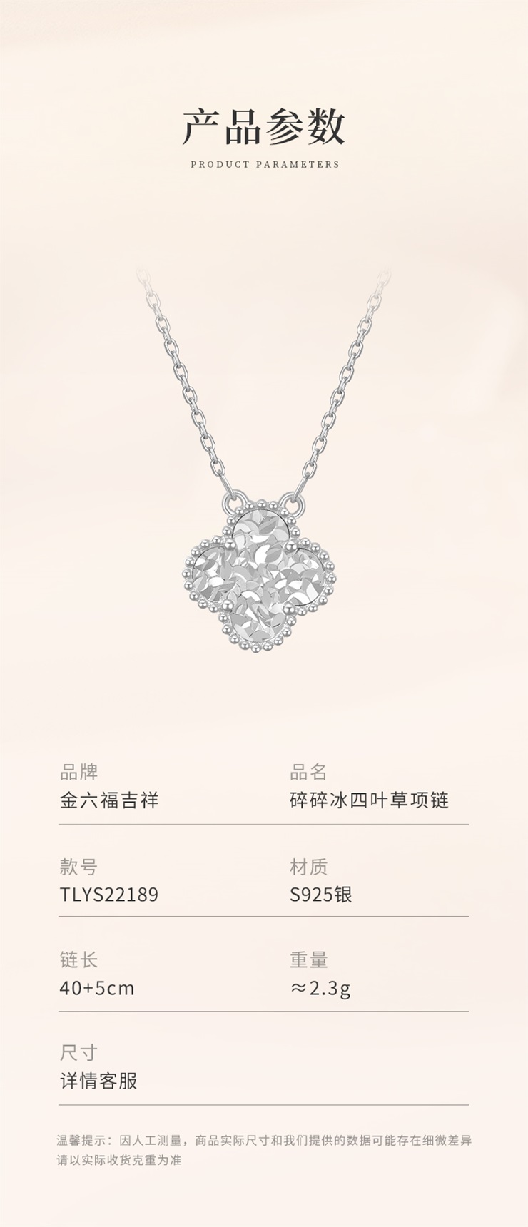 【每证一品】金六福吉祥碎碎冰四叶草项链TLYS22189 送女友送老婆送妈妈